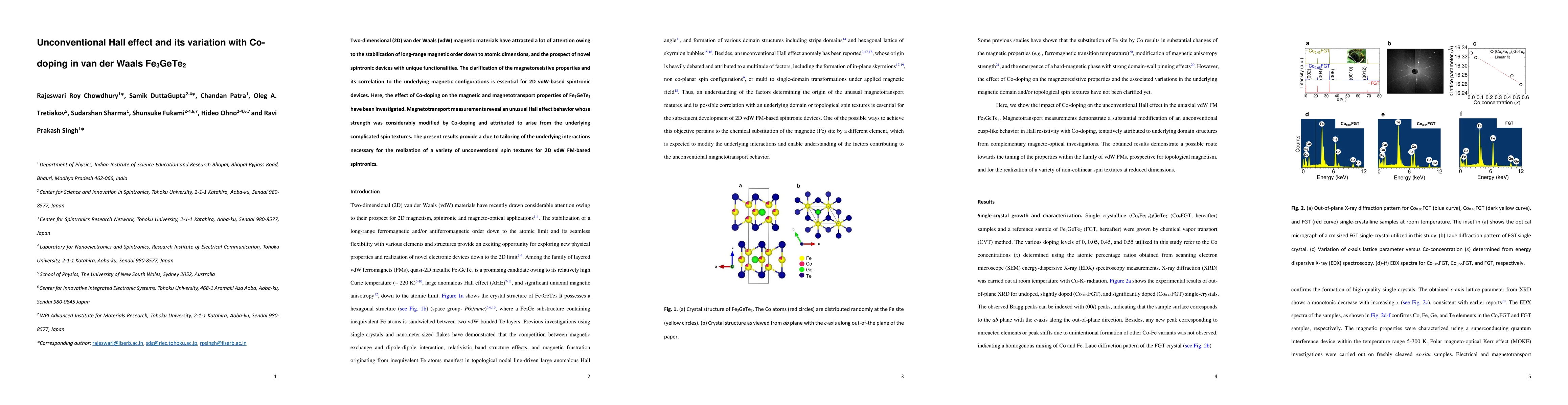 This study investigates the impact of Co-doping on the magnetic and magnetotransport properties of Fe3GeTe2, a 2D van der Waals material. It discovers an unusual Hall effect behavior significantly altered by Co-doping, attributed to complex spin textures, suggesting potential for tailoring spin interactions in 2D vdW FM-based spintronics.