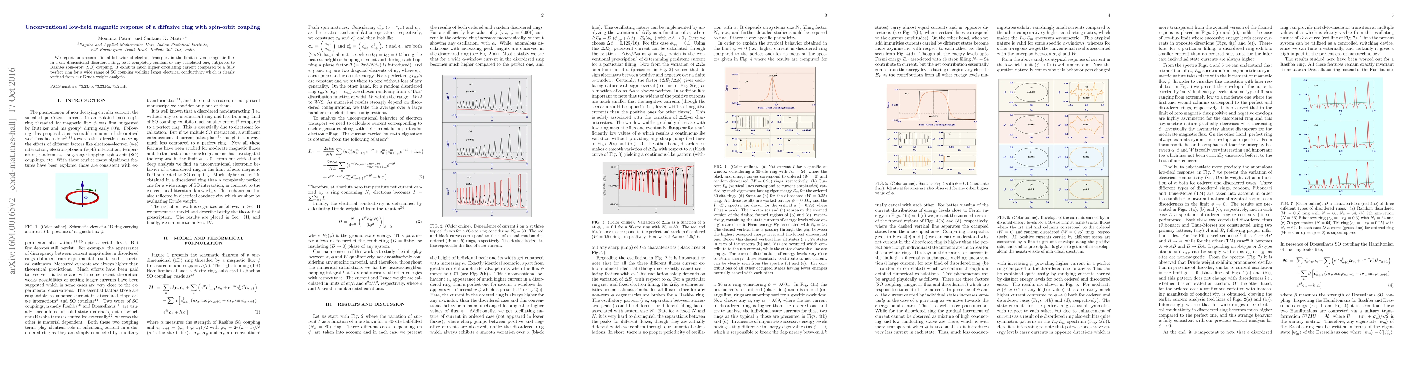 We report an unconventional behavior of electron transport in the limit of zero magnetic flux in a one-dimensional disordered ring, be it completely random or any correlated one, subjected to Rashba spin-orbit (SO) coupling. It exhibits much higher circulating current compared to a fully perfect ring for a wide range of SO coupling yielding larger electrical conductivity which is clearly verified from our Drude weight analysis.