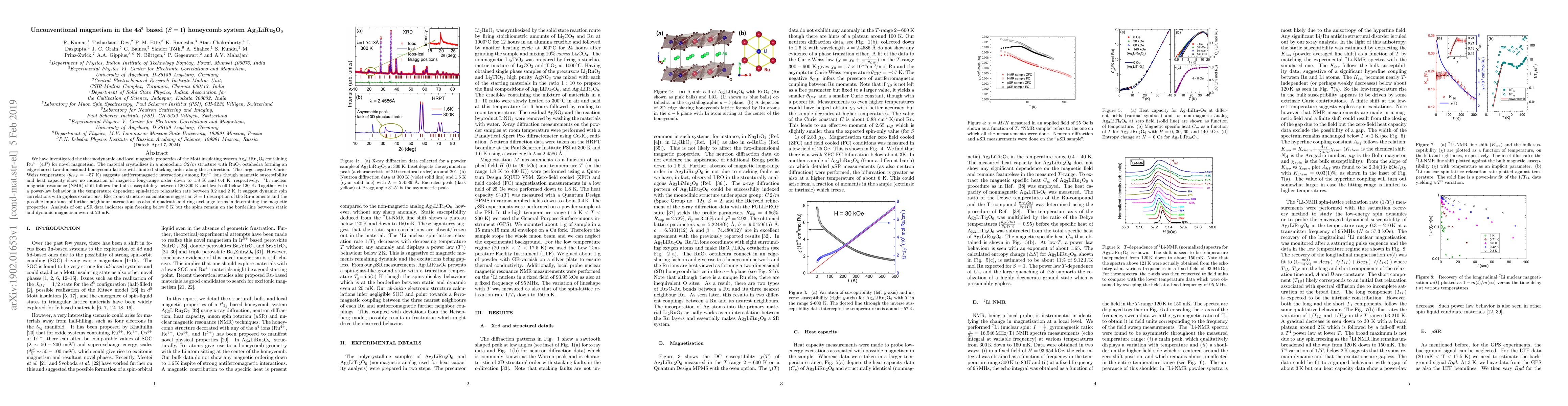 The study of Ag3LiRu2O6, a 4d^4 based honeycomb system, reveals unconventional magnetism. Despite a negative Curie-Weiss temperature indicating antiferromagnetic interactions, no magnetic long-range order is found down to low temperatures. Dynamic spin correlations with gapless excitations are suggested by NMR and u03bb-SR data, while electronic structure calculations propose S=1 Ru-moments and potential influence of further neighbor interactions.