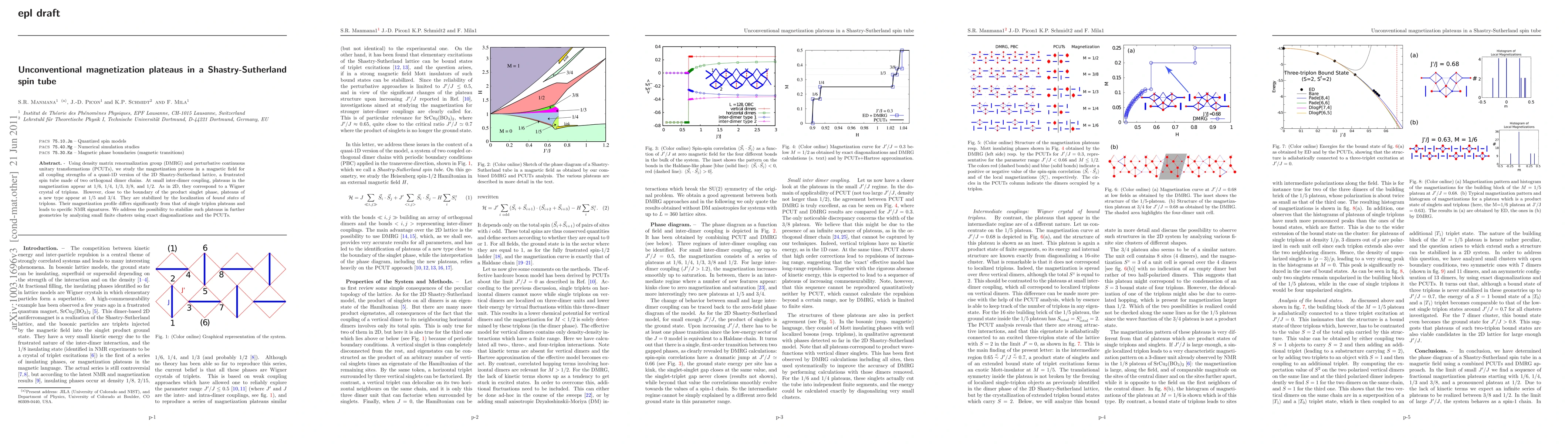 This study explores unconventional magnetization plateaus in a quasi-1D Shastry-Sutherland spin tube using DMRG and PCUTs, revealing new plateaus at 1/5 and 3/4 due to bound triplon states, distinct from typical Wigner crystal plateaus, and suggests potential for similar stabilization in other geometries.