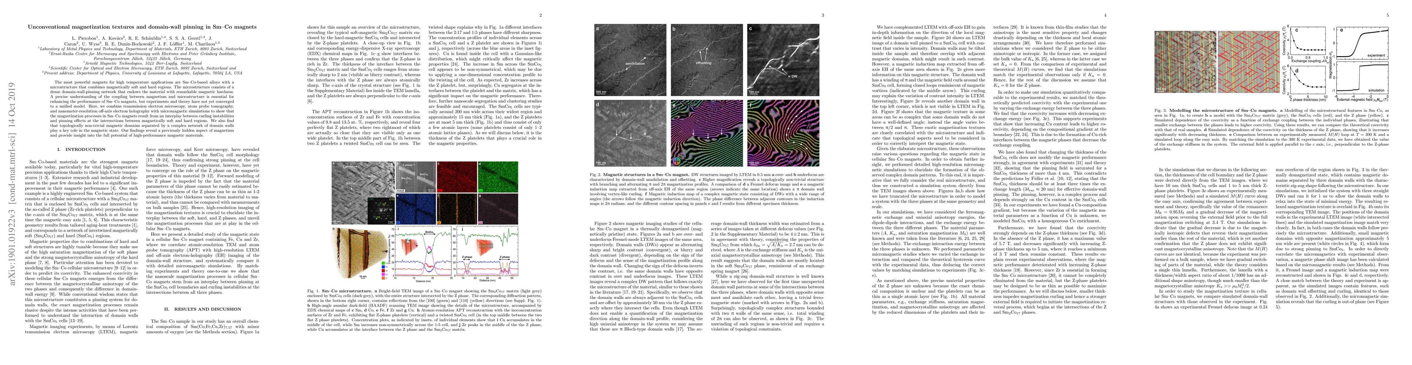 This study reveals the complex magnetization textures and domain-wall pinning mechanisms in Sm-Co magnets, combining advanced microscopy and simulations to show that curling instabilities and pinning interactions at microstructure intersections are crucial for their magnetic hardness. The research uncovers the importance of topologically non-trivial magnetic domains in achieving high-performance magnetic materials.