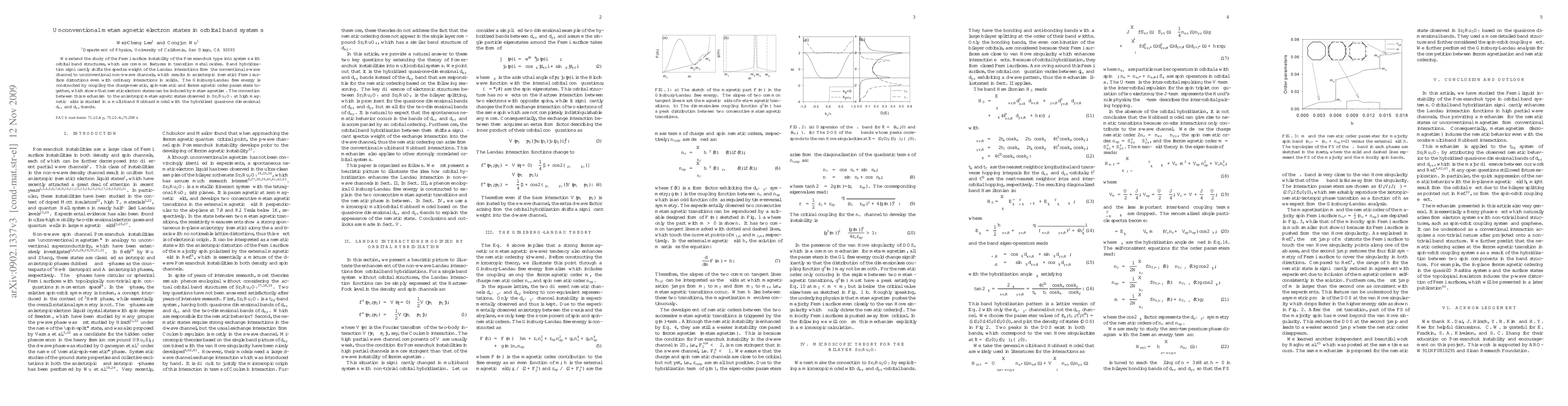 Researchers discover unconventional metamagnetic electron states in orbital band systems of transition metal oxides, which can lead to anisotropic Fermi surface distortions even with ordinary interactions. This finding has implications for understanding the behavior of materials like Sr3Ru2O7 at high magnetic fields.