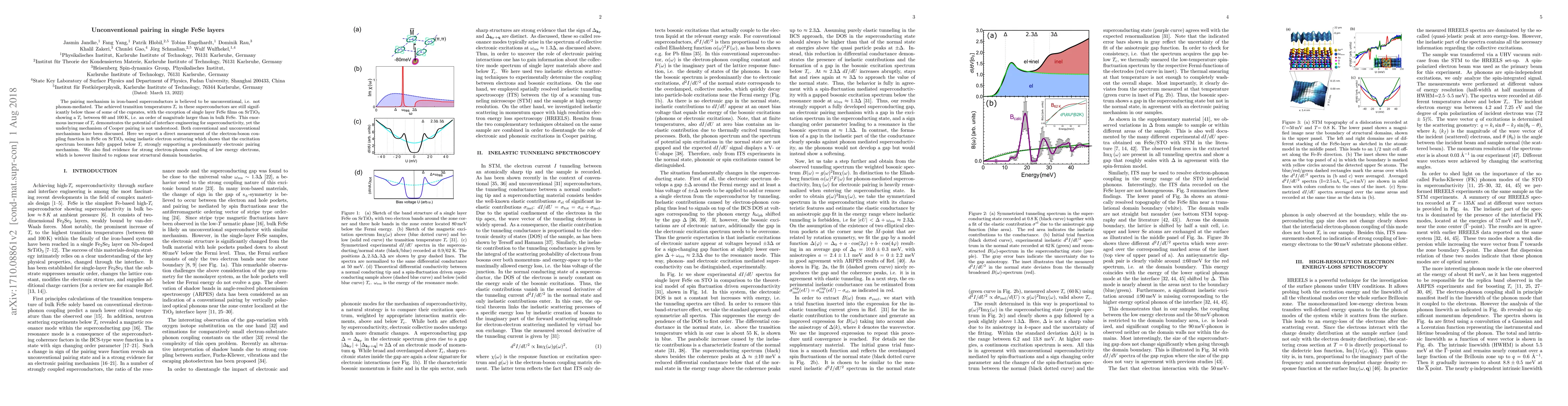 The pairing mechanism in iron-based superconductors is believed to be unconventional, i.e. not phonon-mediated. The achieved transition temperatures Tc in these superconductors are still significantly below those of some of the cuprates, with the exception of single layer FeSe films on SrTiO3 showing a Tc between 60 and 100 K, i.e. an order of magnitude larger than in bulk FeSe. This enormous increase of Tc demonstrates the potential of interface engineering for superconductivity, yet the underlying mechanism of Cooper pairing is not understood. Both conventional and unconventional mechanisms have been discussed. Here we report a direct measurement of the electron-boson coupling function in FeSe on SrTiO3 using inelastic electron scattering which shows that the excitation spectrum becomes fully gapped below Tc strongly supporting a predominantly electronic pairing mechanism. We also find evidence for strong electron-phonon coupling of low energy electrons, which is however limited to regions near structural domain boundaries.