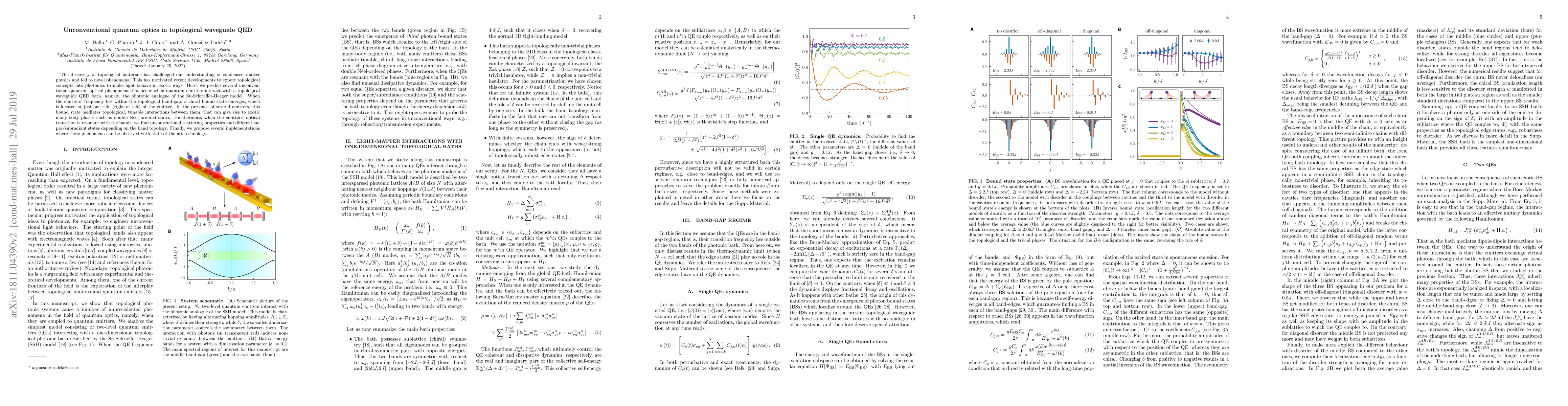 This research predicts unconventional quantum optical phenomena when quantum emitters interact with topological waveguide quantum electrodynamics (QED). It reveals chiral bound states within band-gaps leading to long-range, tunable interactions between emitters, potentially forming exotic phases. The study also explores scattering properties and super/subradiant states depending on band topology, and examines edge states in baths with open boundary conditions. The findings suggest possible implementations with current technology.