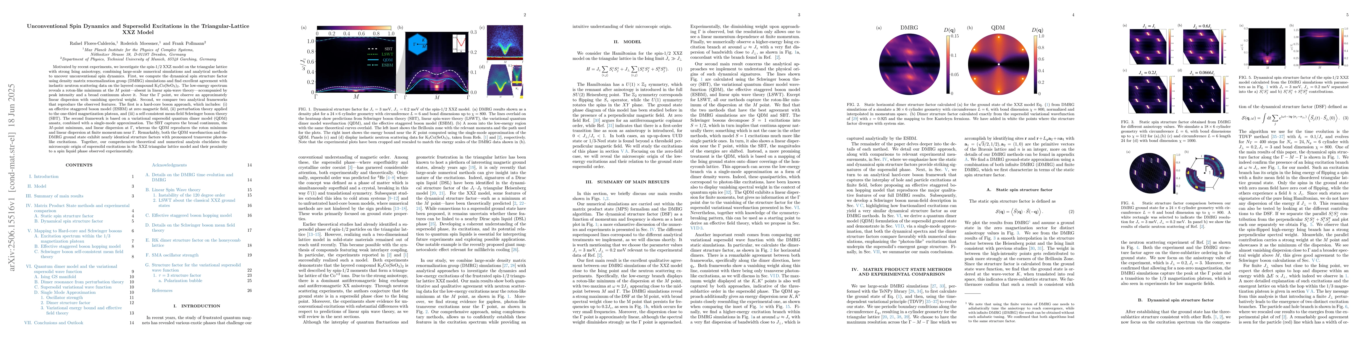 Motivated by recent experiments, we investigate the spin-1/2 XXZ model on the triangular lattice with strong Ising anisotropy, combining large-scale numerical simulations and analytical methods to uncover unconventional spin dynamics. First, we compute the dynamical spin structure factor using density matrix renormalization group (DMRG) simulations and find excellent agreement with inelastic neutron scattering data on the layered compound $\text{K}_2\text{Co}(\text{SeO}_3)_2$. The low-energy spectrum reveals a roton-like minimum at the $M$ point, absent in linear spin-wave theory, accompanied by peak intensity and a broad continuum above it. Near the $\Gamma$ point, we observe an approximately linear dispersion with vanishing spectral weight. Second, we compare two analytical frameworks that reproduce the observed features. The first is a hard-core boson approach, which includes: (i) an effective staggered boson model (ESBM) at zero magnetic field, (ii) perturbation theory applied to the one-third magnetization plateau, and (iii) a self-consistent mean-field Schwinger boson theory (SBT). The second framework is based on a variational supersolid quantum dimer model (QDM) ansatz, combined with a single-mode approximation. The SBT captures the broad continuum, the $M$-point minimum, and linear dispersion at $\Gamma$, whereas the QDM reproduces the roton minimum and linear dispersion at finite momentum near $\Gamma$. Remarkably, both the QDM wavefunction and the DMRG ground state exhibit nearly identical structure factors with pronounced transverse photon-like excitations. Together, our comprehensive theoretical and numerical analysis elucidates the microscopic origin of supersolid excitations in the XXZ triangular lattice model and their proximity to a spin liquid phase observed experimentally.