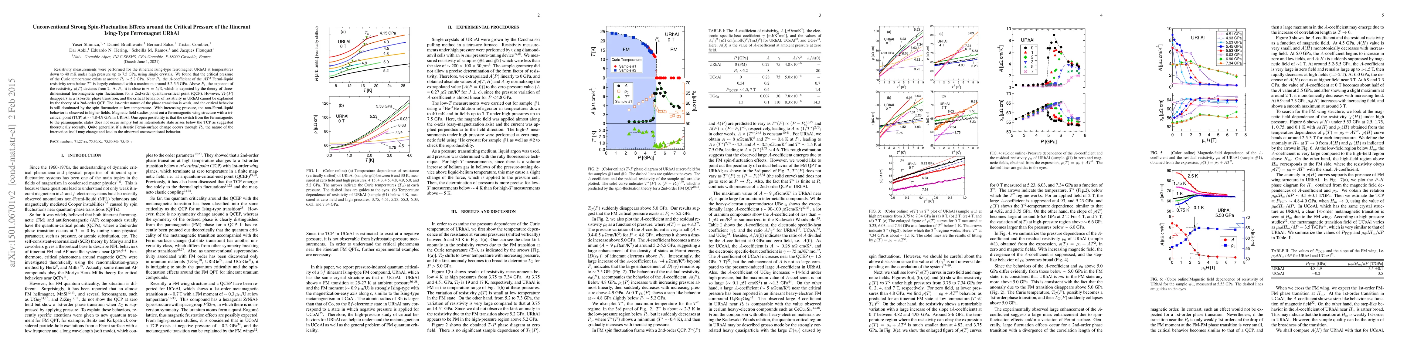 Resistivity measurements were performed for the itinerant Ising-type ferromagnet URhAl at temperatures down to 40 mK under high pressure up to 7.5 GPa, using single crystals. We found that the critical pressure of the Curie temperature exists at around $P_c$ ~ 5.2 GPa. Near $P_c$, the $A$-coefficient of the $AT^{2}$ Fermi-liquid resistivity term below $T^*$ is largely enhanced with a maximum around 5.2-5.5 GPa. Above $P_c$, the exponent of the resistivity $\rho(T)$ deviates from 2. At $P_c$, it is close to $n = 5/3$, which is expected by the theory of three-dimensional ferromagnetic spin fluctuations for a 2nd-order quantum-critical point (QCP). However, $T_C(P)$ disappears as a 1st-order phase transition, and the critical behavior of resistivity in URhAl cannot be explained by the theory of a 2nd-order QCP. The 1st-order nature of the phase transition is weak, and the critical behavior is still dominated by the spin fluctuation at low temperature. With increasing pressure, the non-Fermi-liquid behavior is observed in higher fields. Magnetic field studies point out a ferromagnetic wing structure with a tri-critical point (TCP) at ~ 4.8-4.9 GPa in URhAl. One open possibility is that the switch from the ferromagnetic to the paramagnetic states does not occur simply but an intermediate state arises below the TCP as suggested theoretically recently. Quite generally, if a drastic Fermi-surface change occurs through $P_c$, the nature of the interaction itself may change and lead to the observed unconventional behavior.