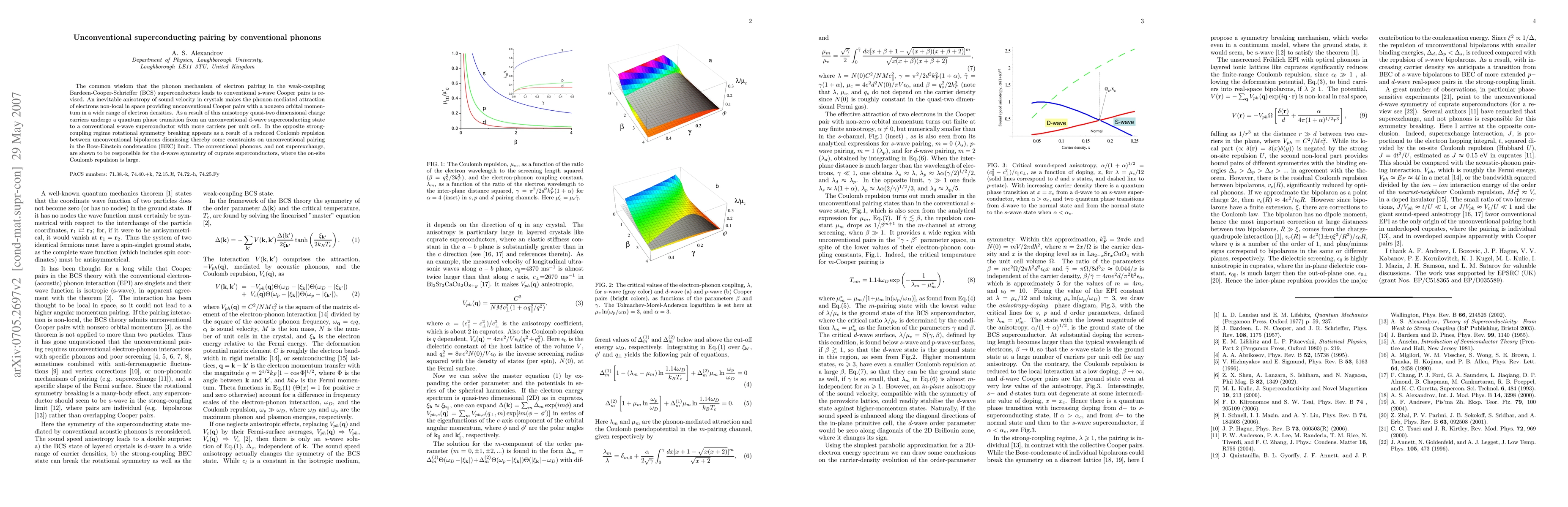 The common wisdom that the phonon mechanism of electron pairing in the weak-coupling Bardeen-Cooper-Schrieffer (BCS) superconductors leads to conventional s-wave Cooper pairs is revised. An inevitable anisotropy of sound velocity in crystals makes the phonon-mediated attraction of electrons non-local in space providing unconventional Cooper pairs with a nonzero orbital momentum in a wide range of electron densities. As a result of this anisotropy quasi-two dimensional charge carriers undergo a quantum phase transition from an unconventional d-wave superconducting state to a conventional s-wave superconductor with more carriers per unit cell. In the opposite strong-coupling regime rotational symmetry breaking appears as a result of a reduced Coulomb repulsion between unconventional bipolarons dismissing thereby some constraints on unconventional pairing in the Bose-Einstein condensation (BEC) limit. The conventional phonons, and not superexchange, are shown to be responsible for the d-wave symmetry of cuprate superconductors, where the on-site Coulomb repulsion is large.