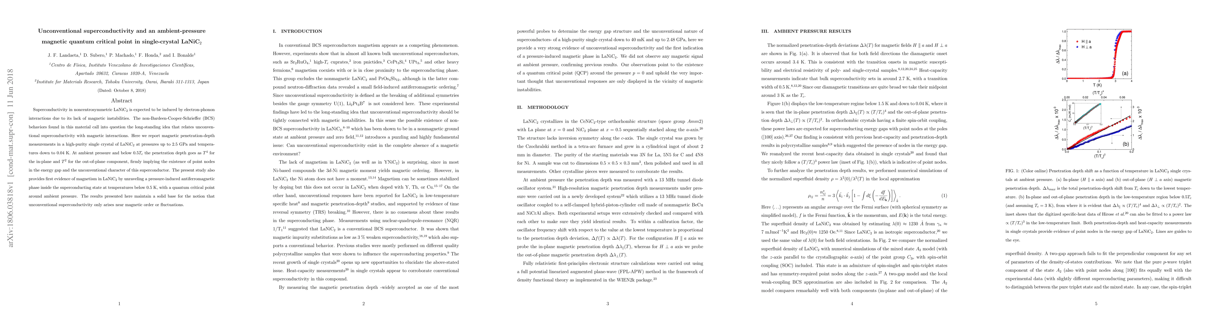 This paper investigates unconventional superconductivity in LaNiC$_2$ and finds non-BCS behaviors indicating point nodes in the energy gap. It also reveals a pressure-induced antiferromagnetic phase within the superconducting state, suggesting a quantum critical point at ambient pressure.