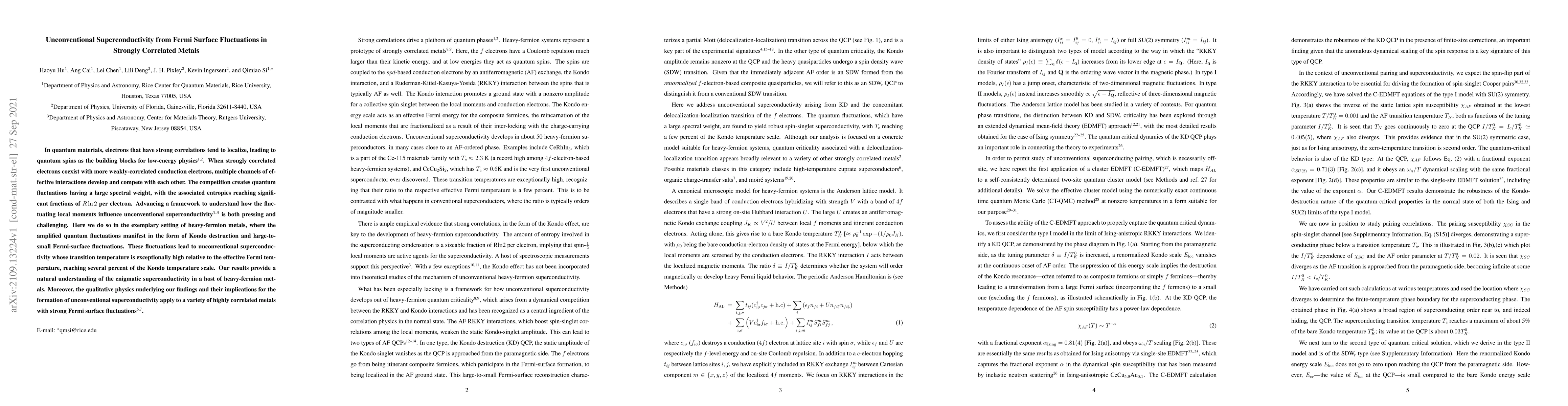 This paper explores how quantum fluctuations from strongly correlated electrons, particularly in heavy-fermion metals, drive unconventional superconductivity. It demonstrates that these fluctuations, characterized by large-to-small Fermi surface changes, lead to high-temperature superconductivity, providing insight into the superconductivity mechanism in strongly correlated systems.