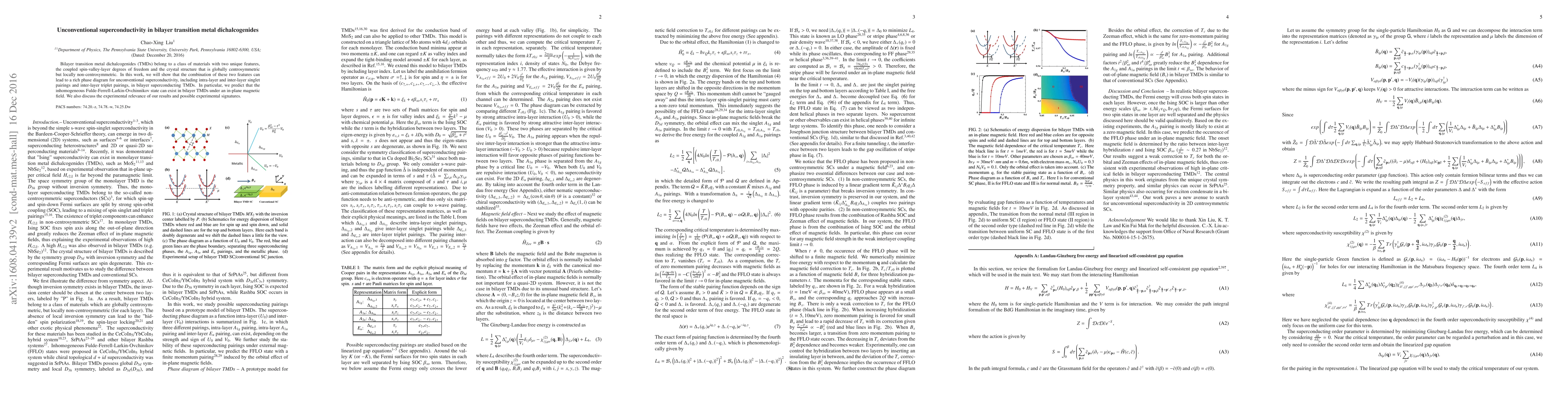 This research investigates unconventional superconductivity in bilayer transition metal dichalcogenides (TMDs), revealing a rich phase diagram with intra-layer and inter-layer pairings. The study predicts the existence of an inhomogeneous Fulde-Ferrell-Larkin-Ovchinnikov state under an in-plane magnetic field, suggesting potential experimental signatures.