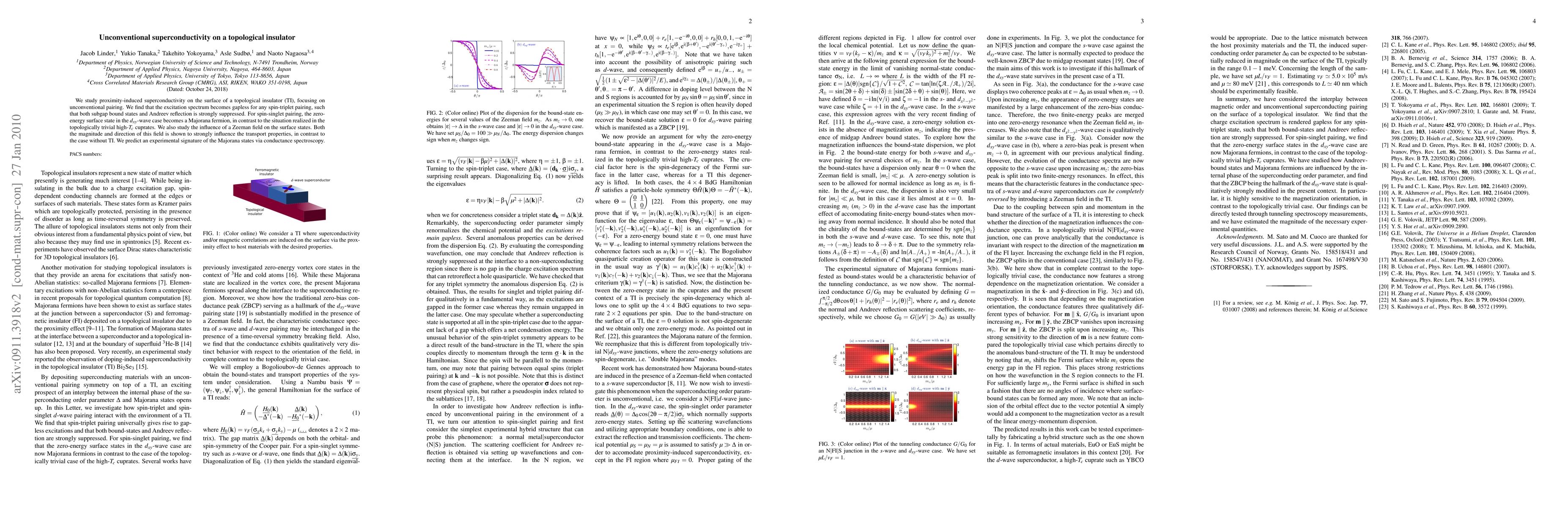 Researchers discover unconventional superconductivity on topological insulators, where spin-triplet pairing leads to gapless excitation spectra and Majorana fermion states, with a Zeeman field influencing transport properties.