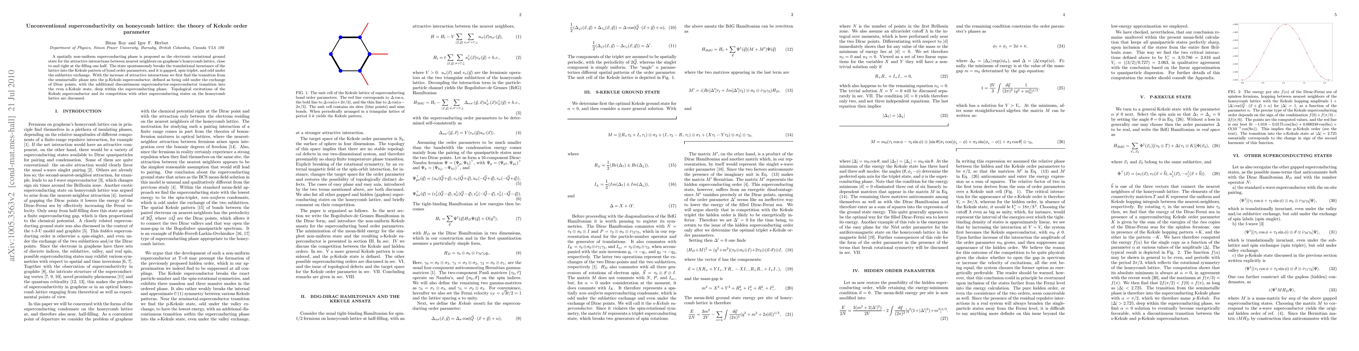 The paper proposes a spatially non-uniform superconducting phase on graphene's honeycomb lattice, exhibiting a Kekule pattern. It details transitions between semimetallic, p-Kekule superconductor, and s-Kekule superconductor phases, discussing topological excitations and competition among superconducting states.