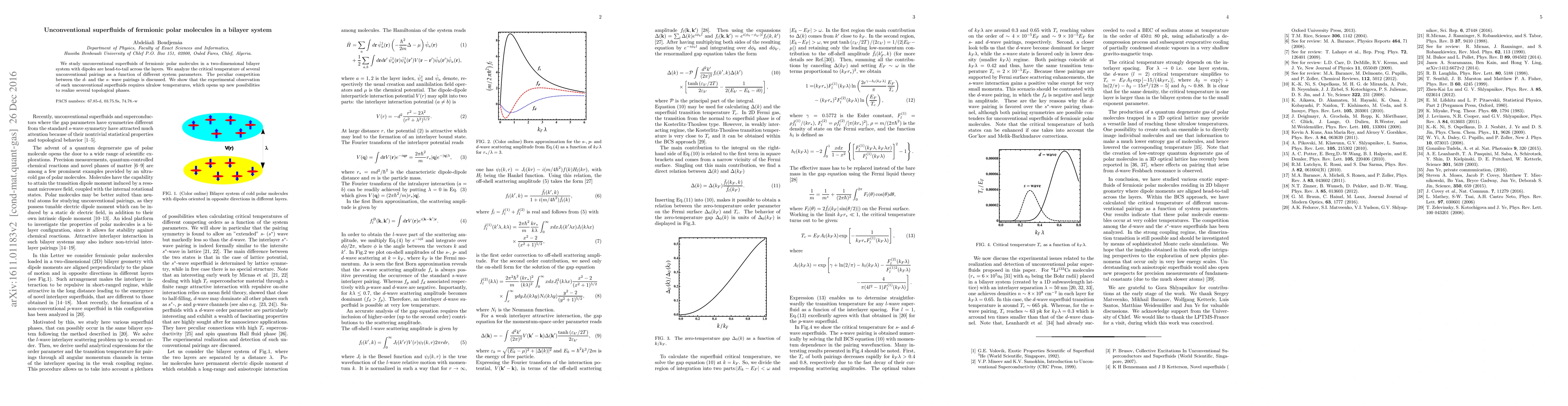 This paper investigates unconventional superfluids formed by fermionic polar molecules in a bilayer system, focusing on the competition between $d$- and $s$-wave pairings. It finds that observing these superfluids necessitates ultralow temperatures, potentially enabling the realization of new topological phases.