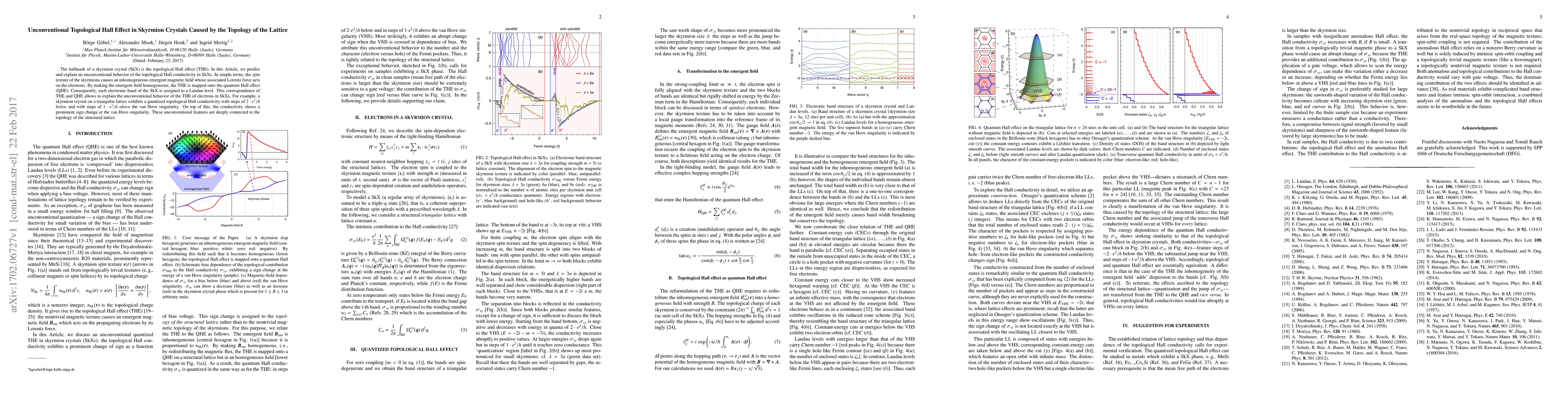 The hallmark of a skyrmion crystal (SkX) is the topological Hall effect (THE). In this Article, we predict and explain an unconventional behavior of the topological Hall conductivity in SkXs. In simple terms, the spin texture of the skyrmions causes an inhomogeneous emergent magnetic field whose associated Lorentz force acts on the electrons. By making the emergent field homogeneous, the THE is mapped onto the quantum Hall effect (QHE). Consequently, each electronic band of the SkX is assigned to a Landau level. This correspondence of THE and QHE allows to explain the unconventional behavior of the THE of electrons in SkXs. For example, a skyrmion crystal on a triangular lattice exhibits a quantized topological Hall conductivity with steps of $2 \cdot e^2/h$ below and with steps of $1 \cdot e^2/h$ above the van Hove singularity. On top of this, the conductivity shows a prominent sign change at the van Hove singularity. These unconventional features are deeply connected to the topology of the structural lattice.