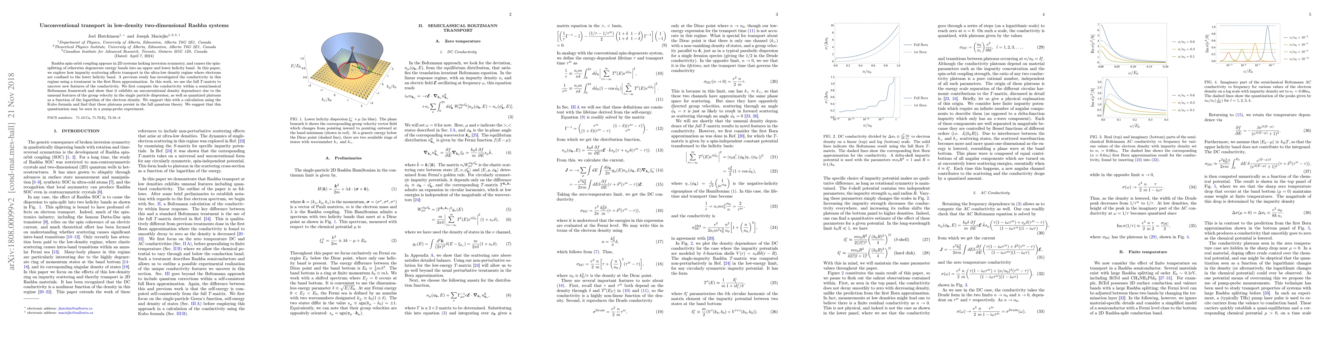 This paper investigates the unconventional transport properties in low-density two-dimensional Rashba systems, revealing an unusual density dependence and quantized conductivity plateaus using the full T-matrix approach, which contrasts with previous first Born approximation results. The findings suggest a potential observable quantization in pump-probe experiments.