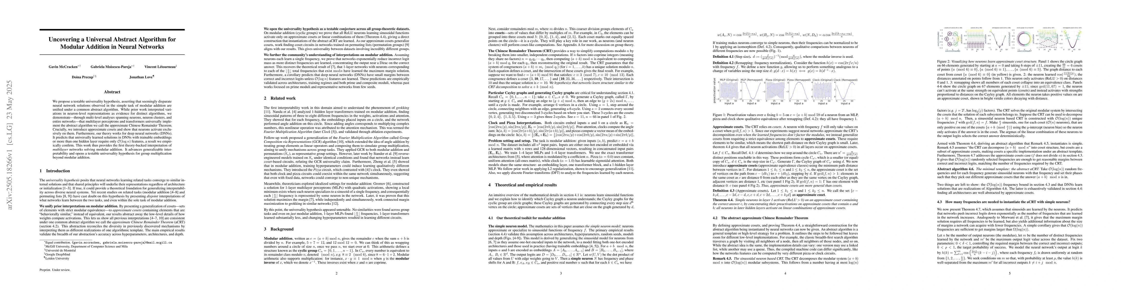 Researchers propose a universal algorithm for neural networks solving modular addition, finding that multilayer perceptrons and transformers use the approximate Chinese Remainder Theorem, simplifying solutions to O(log n) features.