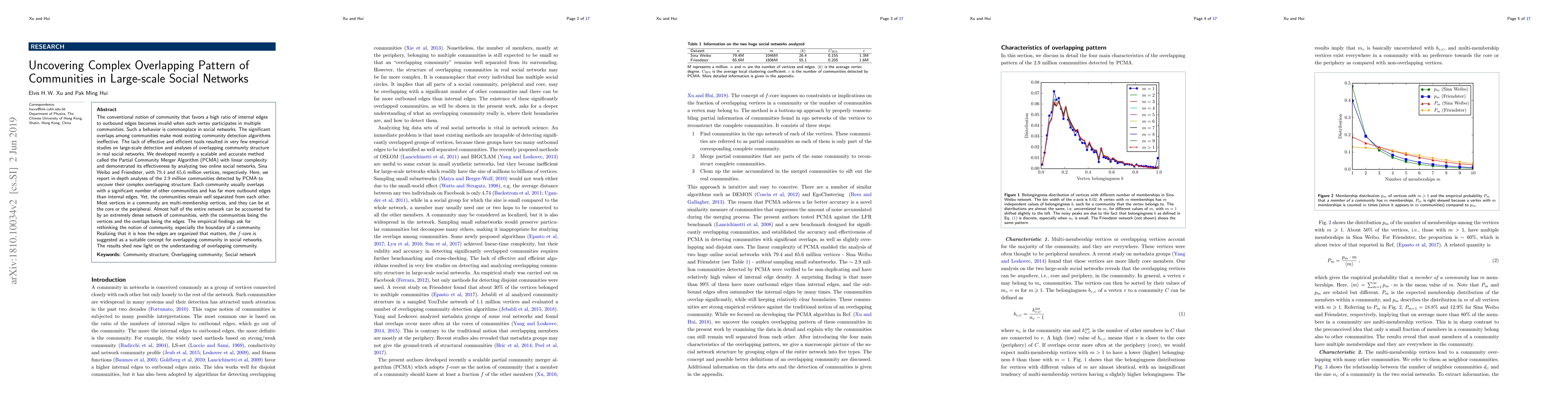 This paper introduces the Partial Community Merger Algorithm (PCMA) to detect overlapping communities in large-scale social networks, revealing complex overlapping structures where communities frequently intersect. The study highlights that traditional community detection methods are ineffective due to significant overlaps, and proposes the f-core concept to better understand the organization of edges in these networks.