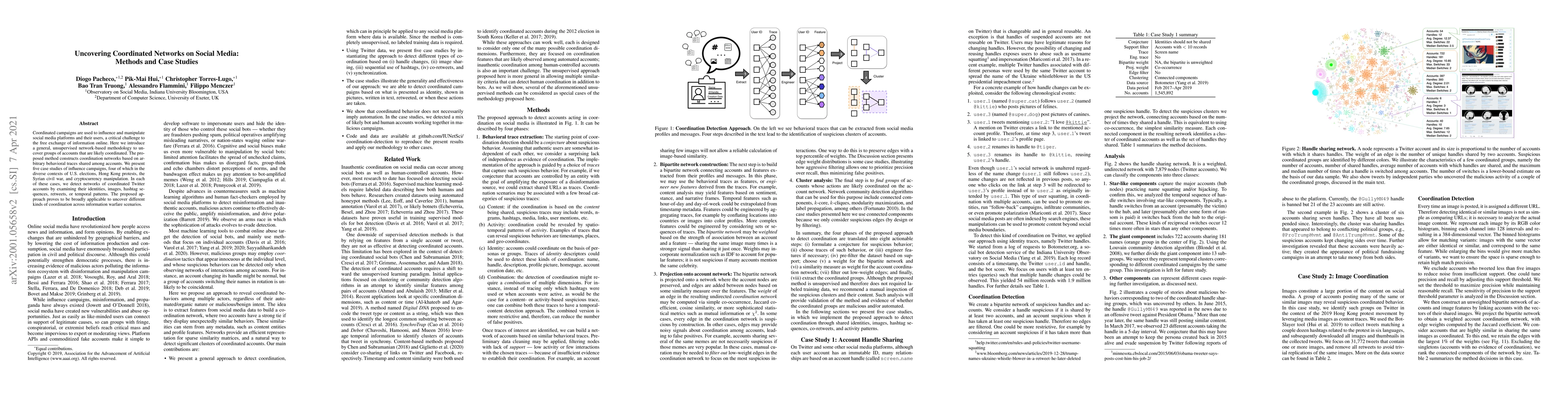 This paper presents an unsupervised network-based method to detect coordinated campaigns on social media by analyzing behavioral traces among accounts. It applies this method to five case studies involving U.S. elections, Hong Kong protests, the Syrian civil war, and cryptocurrency manipulation, demonstrating its effectiveness across diverse contexts.