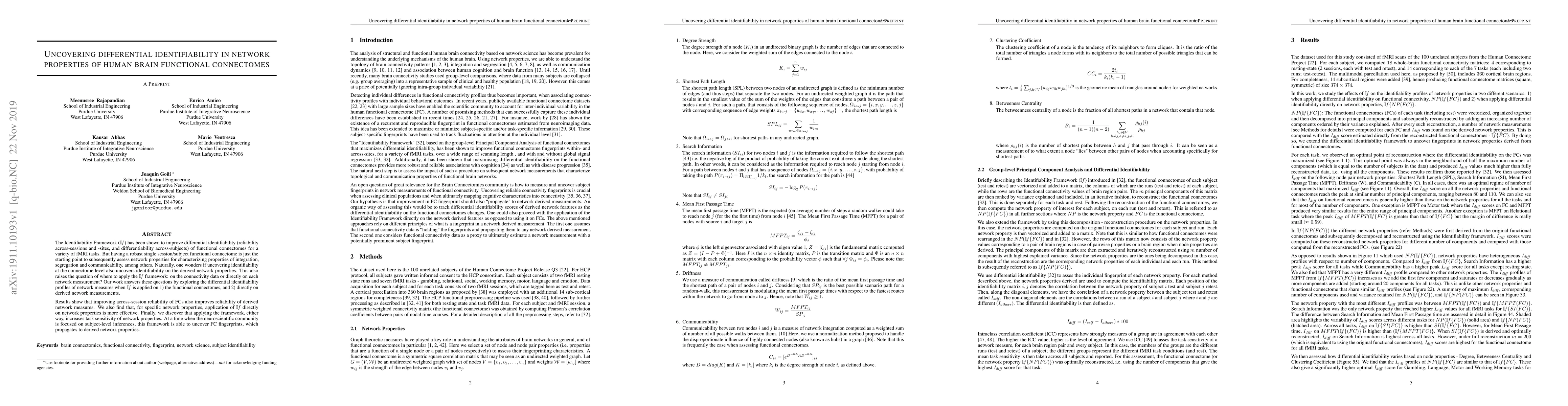 This paper investigates how the Identifiability Framework (If) affects the differential identifiability of network properties derived from human brain functional connectomes. It finds that applying If to functional connectomes or directly to network measures enhances the reliability and task sensitivity of these properties, with specific network properties benefiting more from direct application of If.