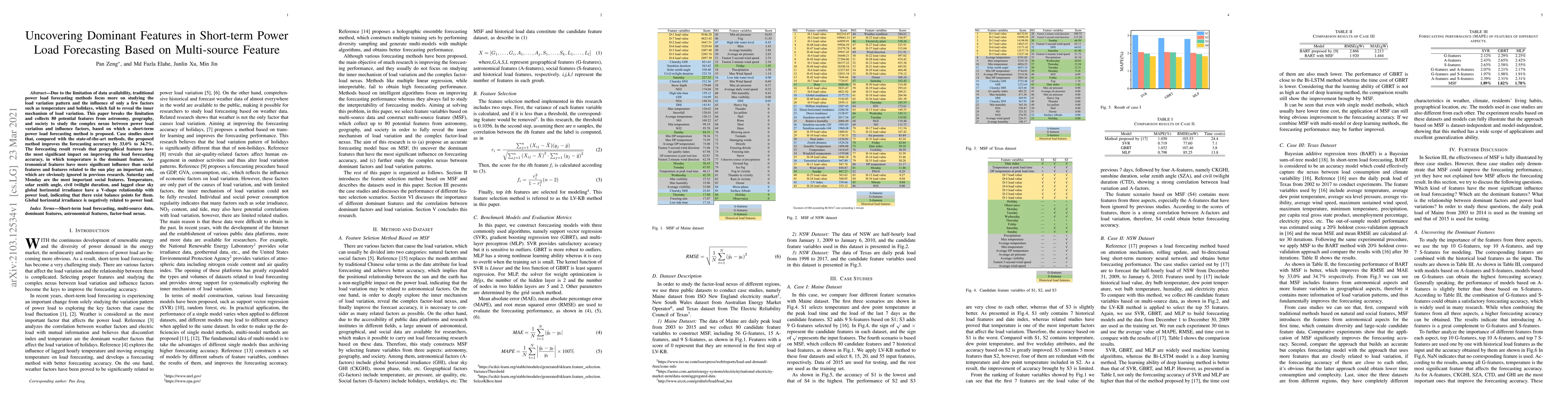 A new power load forecasting method uses 80 features from astronomy, geography, and society to improve accuracy by 33-34% compared to existing methods, with temperature as the dominant feature.