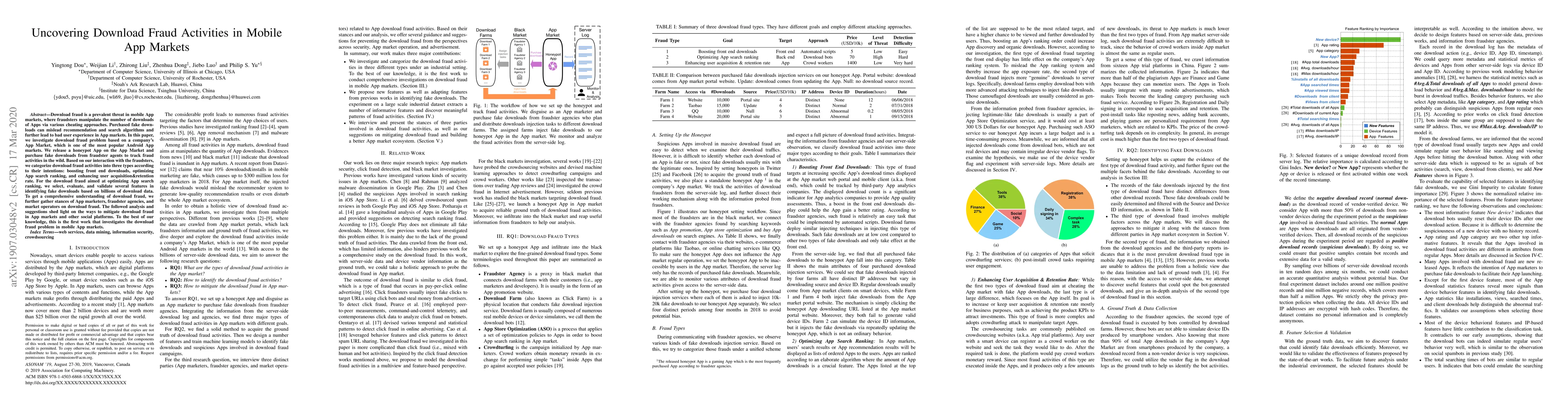 This paper investigates download fraud in mobile App markets by deploying a honeypot App and categorizing fraud activities into boosting downloads, optimizing search rankings, and enhancing user retention. It proposes features to identify fake downloads and gathers insights from stakeholders to suggest mitigation strategies.