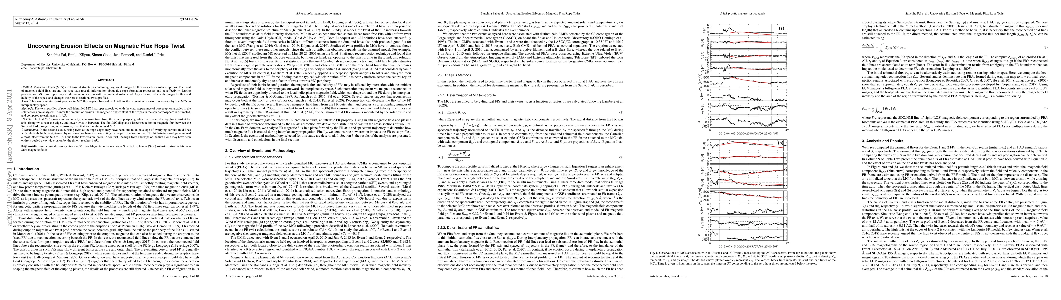 This study investigates the erosion effects on magnetic flux rope twist in magnetic clouds (MCs) by analyzing two MC flux ropes. The first MC shows a larger reduction in magnetic flux and a monotonically decreasing twist, indicating significant erosion. The second MC retains a high-twist envelope, suggesting lower erosion and preservation of its twist profile.