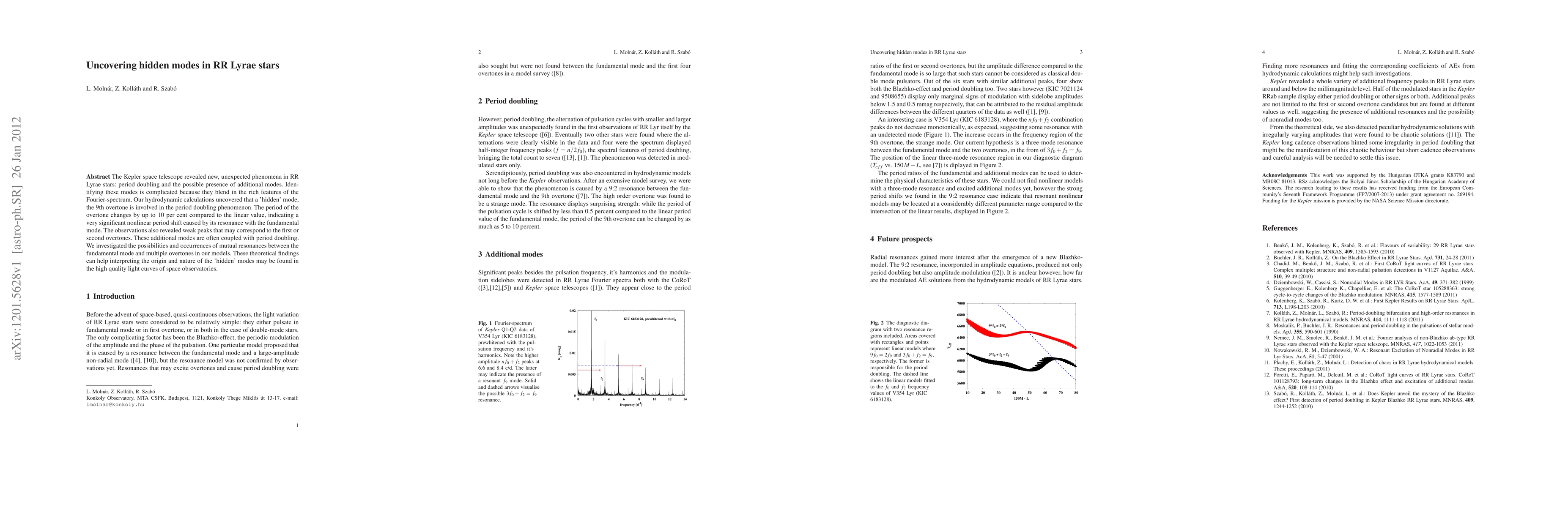 The Kepler space telescope revealed new, unexpected phenomena in RR Lyrae stars: period doubling and the possible presence of additional modes. Identifying these modes is complicated because they blend in the rich features of the Fourier-spectrum. Our hydrodynamic calculations uncovered that a 'hidden' mode, the 9th overtone is involved in the period doubling phenomenon. The period of the overtone changes by up to 10 per cent compared to the linear value, indicating a very significant nonlinear period shift caused by its resonance with the fundamental mode. The observations also revealed weak peaks that may correspond to the first or second overtones. These additional modes are often coupled with period doubling. We investigated the possibilities and occurrences of mutual resonances between the fundamental mode and multiple overtones in our models. These theoretical findings can help interpreting the origin and nature of the 'hidden' modes may be found in the high quality light curves of space observatories.