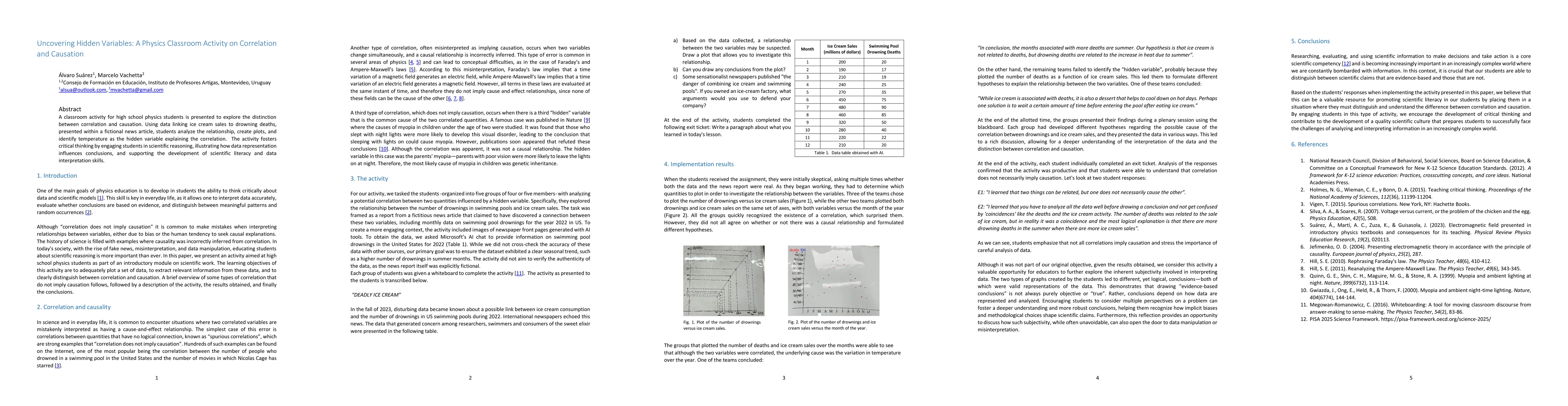One of the main goals of physics education is to develop in students the ability to think critically about data and scientific models. This skill is key in everyday life, as it allows one to interpret data accurately, evaluate whether conclusions are based on evidence, and distinguish between meaningful patterns and random occurrences. Although "correlation does not imply causation" it is common to make mistakes when interpreting relationships between variables, either due to bias or the human tendency to seek causal explanations. The history of science is filled with examples where causality was incorrectly inferred from correlation. In today's society, with the rise of fake news, misinterpretation, and data manipulation, educating students about scientific reasoning is more important than ever. In this paper, we present an activity aimed at high school physics students as part of an introductory module on scientific work. The learning objectives of this activity are to adequately plot a set of data, to extract relevant information from these data, and to clearly distinguish between correlation and causation. A brief overview of some types of correlation that do not imply causation follows, followed by a description of the activity, the results obtained, and finally the conclusions.