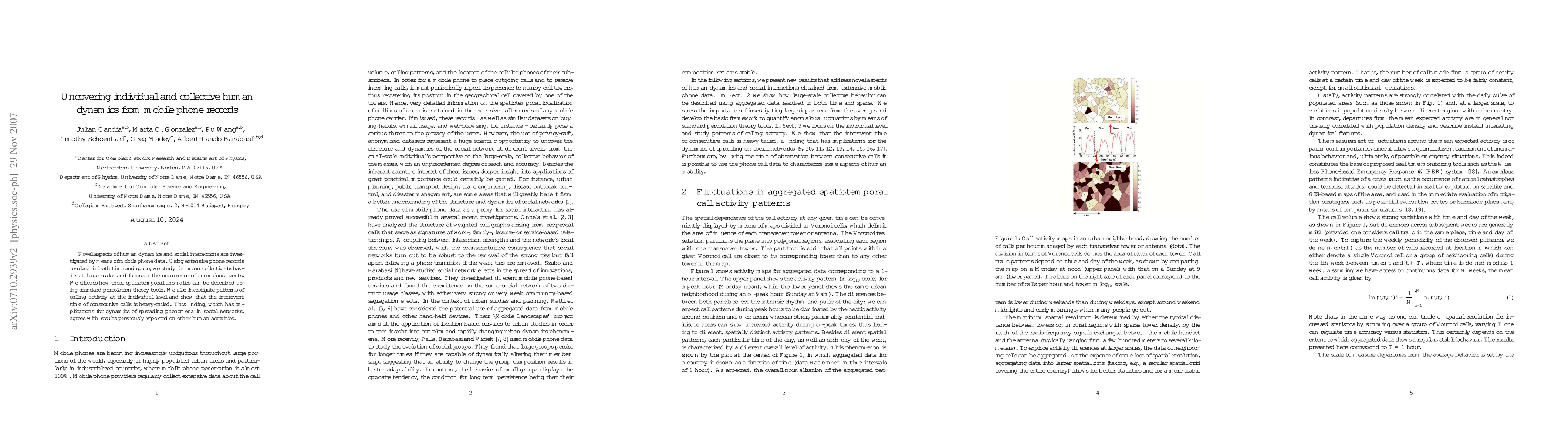 This paper investigates human dynamics and social interactions through extensive mobile phone records, revealing large-scale collective behavior and anomalous events described by percolation theory. It also finds heavy-tailed interevent times in individual calling activity, suggesting implications for spreading phenomena in social networks.