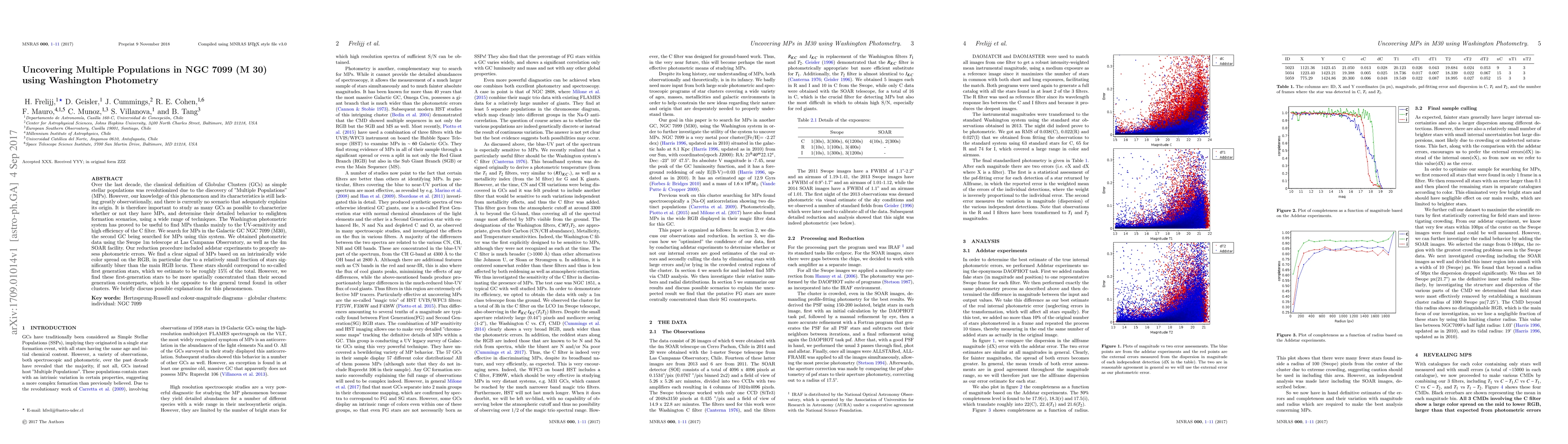 Over the last decade, the classical definition of Globular Clusters (GCs) as simple stellar populations was revolutionized due to the discovery of "Multiple Populations" (MPs). However, our knowledge of this phenomenon and its characteristics is still lacking greatly observationally, and there is currently no scenario that adequately explains its origin. It is therefore important to study as many GCs as possible to characterize whether or not they have MPs, and determine their detailed behavior to enlighten formation scenarios, using a wide range of techniques. The Washington photometric system has proved to be useful to find MPs thanks mainly to the UV-sensitivity and high efficiency of the C filter. We search for MPs in the Galactic GC NGC 7099 (M30), the second GC being searched for MPs using this system. We obtained photometric data using the Swope 1m telescope at Las Campanas Observatory, as well as the 4m SOAR facility. Our reduction procedure included addstar experiments to properly assess photometric errors. We find a clear signal of MPs based on an intrinsically wide color spread on the RGB, in particular due to a relatively small fraction of stars significantly bluer than the main RGB locus. These stars should correspond to so-called first generation stars, which we estimate to be roughly 15\% of the total. However, we find these first-generation stars to be more spatially concentrated than their second generation counterparts, which is the opposite to the general trend found in other clusters. We briefly discuss possible explanations for this phenomenon.