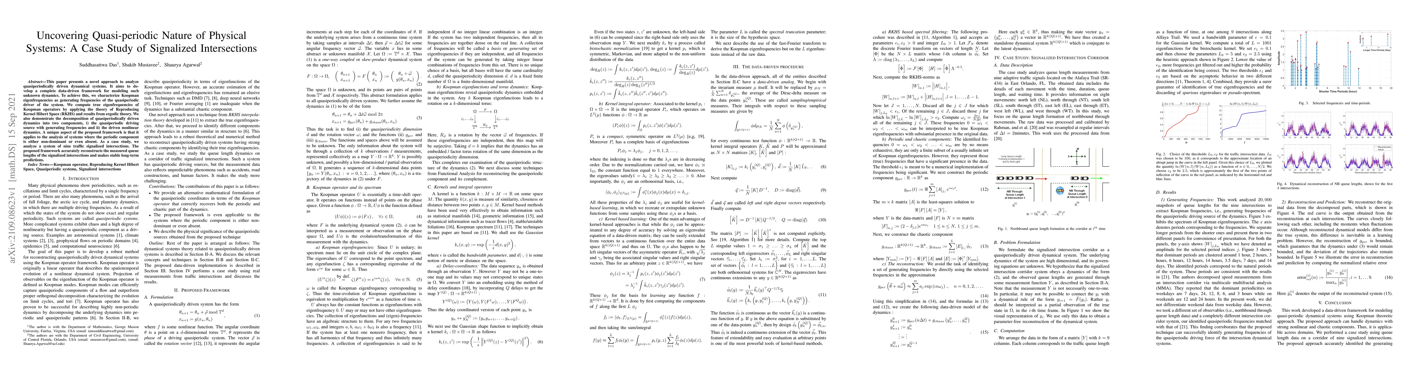 This paper develops a data-driven framework to model quasiperiodically driven dynamical systems, applying Koopman eigenfrequencies and Reproducing Kernel Hilbert Space theory to analyze traffic signalized intersections, successfully reconstructing and predicting queue lengths.