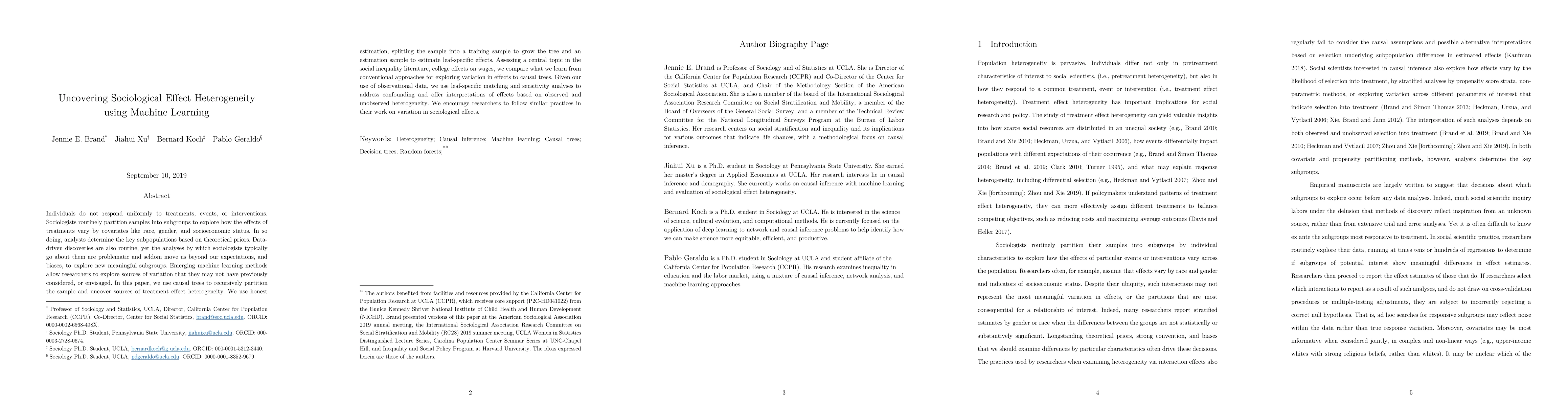 Individuals do not respond uniformly to treatments, events, or interventions. Sociologists routinely partition samples into subgroups to explore how the effects of treatments vary by covariates like race, gender, and socioeconomic status. In so doing, analysts determine the key subpopulations based on theoretical priors. Data-driven discoveries are also routine, yet the analyses by which sociologists typically go about them are problematic and seldom move us beyond our expectations, and biases, to explore new meaningful subgroups. Emerging machine learning methods allow researchers to explore sources of variation that they may not have previously considered, or envisaged. In this paper, we use causal trees to recursively partition the sample and uncover sources of treatment effect heterogeneity. We use honest estimation, splitting the sample into a training sample to grow the tree and an estimation sample to estimate leaf-specific effects. Assessing a central topic in the social inequality literature, college effects on wages, we compare what we learn from conventional approaches for exploring variation in effects to causal trees. Given our use of observational data, we use leaf-specific matching and sensitivity analyses to address confounding and offer interpretations of effects based on observed and unobserved heterogeneity. We encourage researchers to follow similar practices in their work on variation in sociological effects.