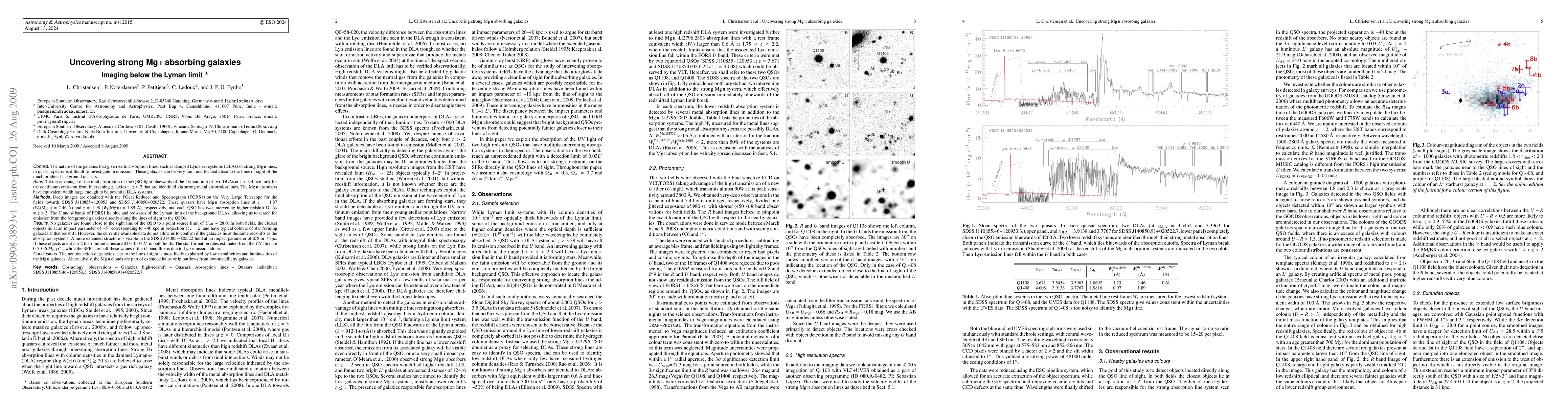 This study investigates the nature of galaxies responsible for strong MgII absorption lines in quasar spectra by imaging below the Lyman limit. Despite deep imaging of two fields, no galaxies were detected close to the sight lines of the quasars, suggesting these galaxies may have low luminosities or lie at different redshifts.