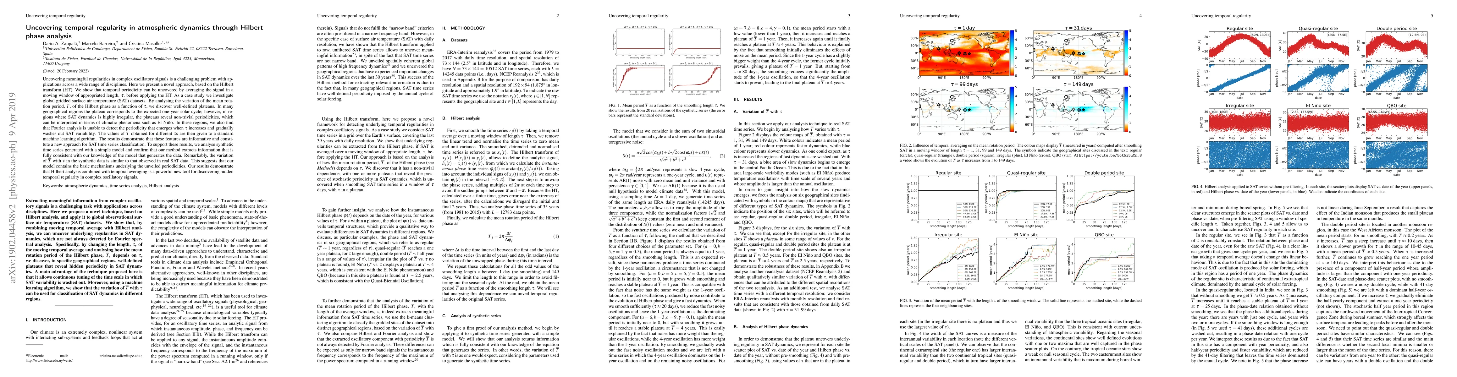Researchers developed a new method using Hilbert phase analysis to uncover hidden temporal regularities in atmospheric dynamics, revealing unexpected periodicities like El Niño patterns in irregular SAT data.