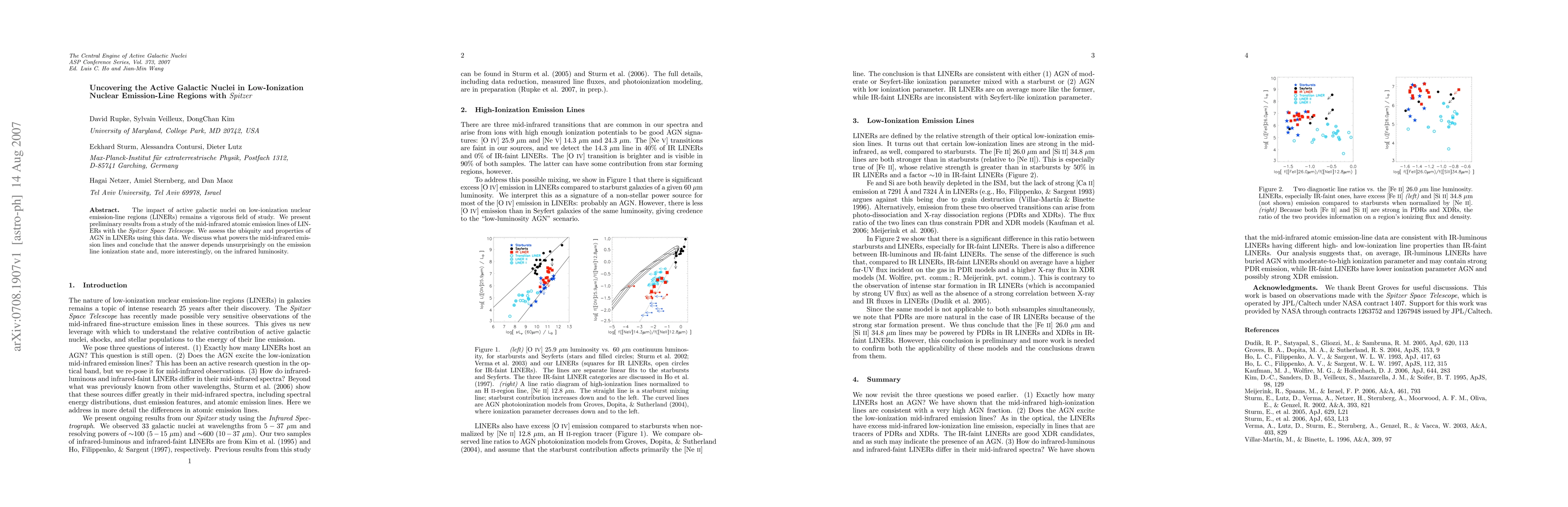 The impact of active galactic nuclei on low-ionization nuclear emission-line regions (LINERs) remains a vigorous field of study. We present preliminary results from a study of the mid-infrared atomic emission lines of LINERs with the Spitzer Space Telescope. We assess the ubiquity and properties of AGN in LINERs using this data. We discuss what powers the mid-infrared emission lines and conclude that the answer depends unsurprisingly on the emission line ionization state and, more interestingly, on the infrared luminosity.