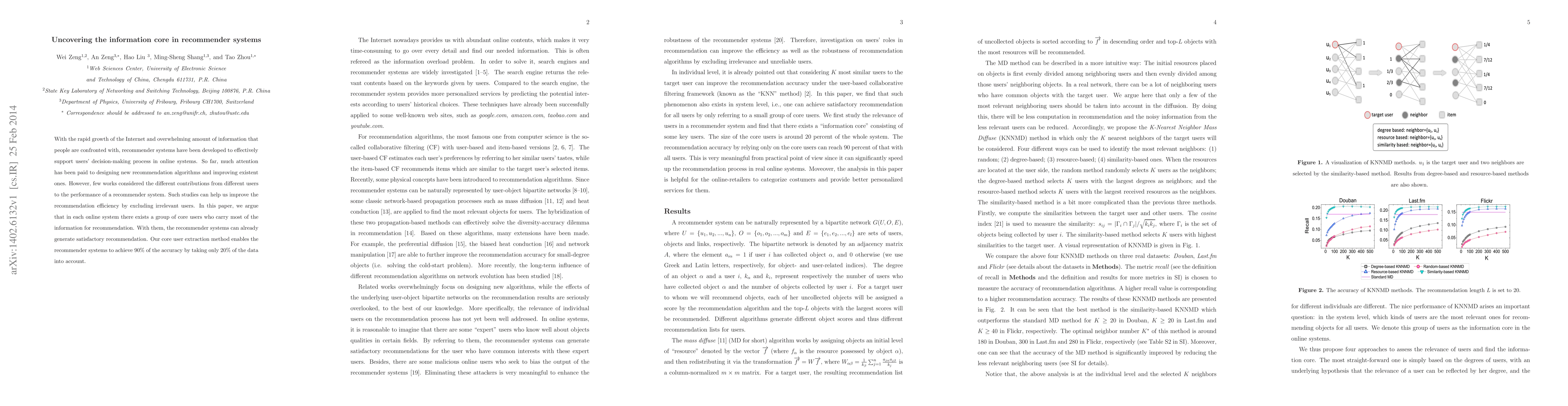 The paper proposes four approaches to assess user relevance and identify the information core in recommender systems, improving recommendation efficiency by excluding irrelevant users.