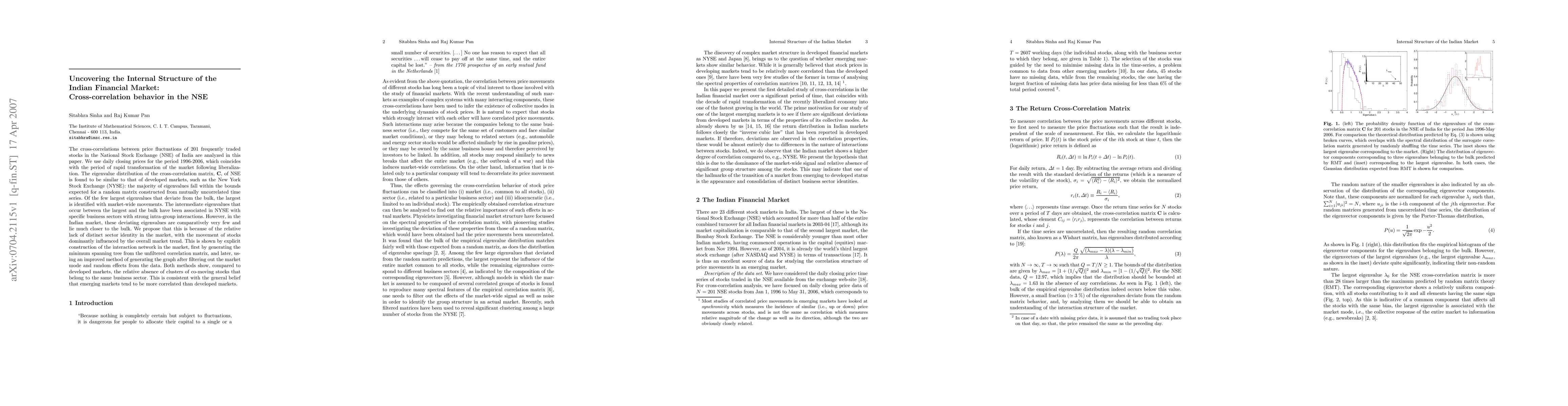 This study analyzed cross-correlations between 201 Indian stocks from 1996-2006, finding that the market is dominated by overall trend movements rather than sector-specific interactions, unlike developed markets.