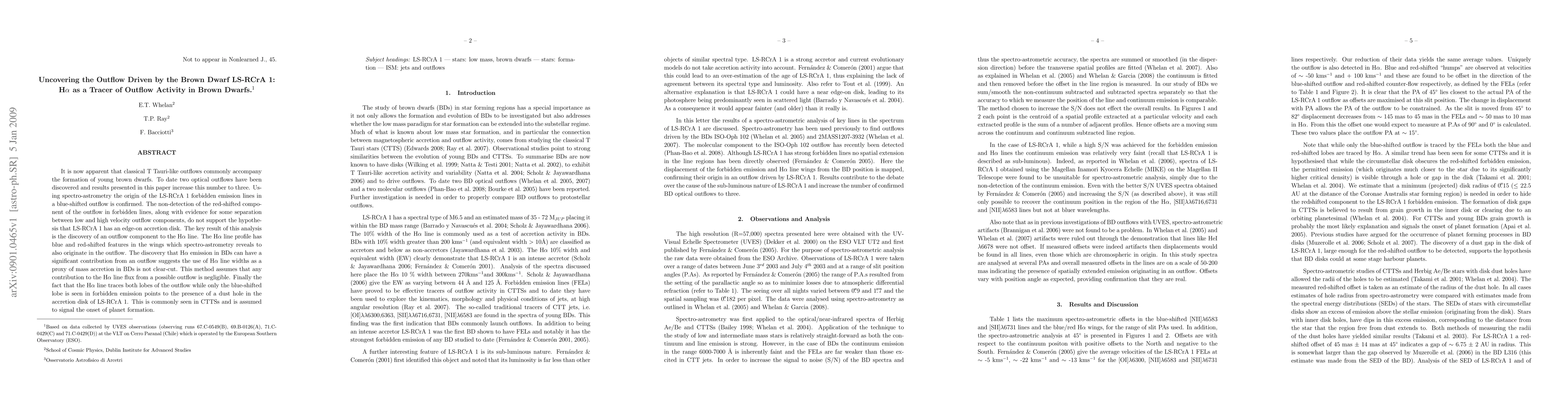 It is now apparent that classical T Tauri-like outflows commonly accompany the formation of young brown dwarfs. To date two optical outflows have been discovered and results presented in this paper increase this number to three. Using spectro-astrometry the origin of the LS-RCrA 1 forbidden emission lines in a blue-shifted outflow is confirmed. The non-detection of the red-shifted component of the outflow in forbidden lines, along with evidence for some separation between low and high velocity outflow components, do not support the hypothesis that LS-RCrA 1 has an edge-on accretion disk. The key result of this analysis is the discovery of an outflow component to the H-alpha line. The H-alpha line profile has blue and red-shifted features in the wings which spectro-astrometry reveals to also originate in the outflow. The discovery that H-alpha emission in BDs can have a significant contribution from an outflow suggests the use of H-alpha line widths as a proxy of mass accretion in BDs is not clear-cut. This method assumes that any contribution to the H-alpha line flux from a possible outflow is negligible. Finally the fact that the H-alpha line traces both lobes of the outflow while only the blue-shifted lobe is seen in forbidden emission points to the presence of a dust hole in the accretion disk of LS-RCrA 1. This is commonly seen in CTTSs and is assumed to signal the onset of planet formation.
