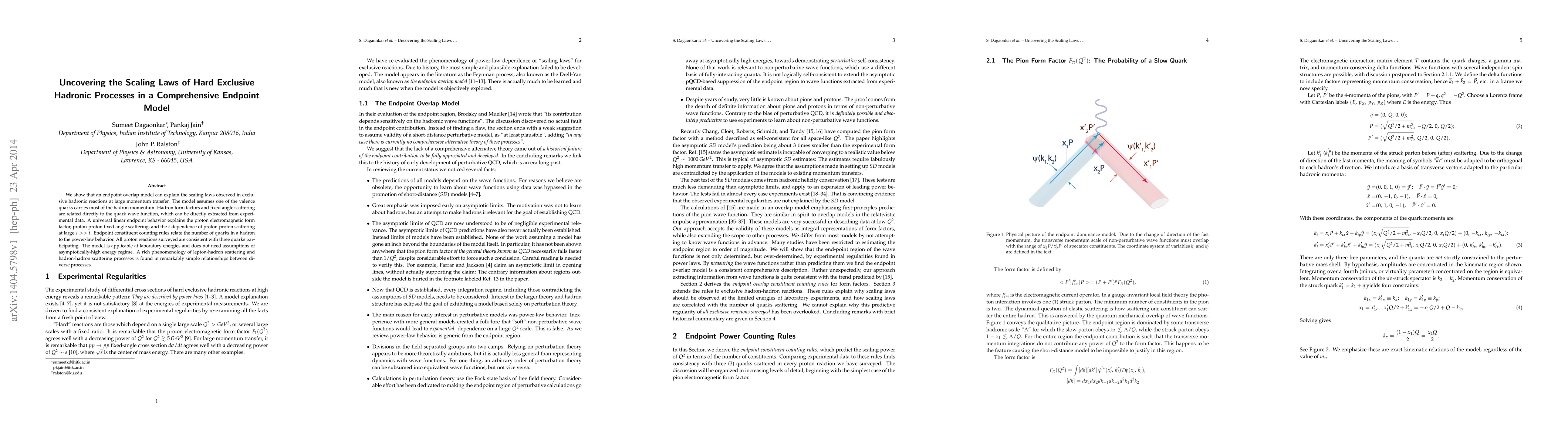 This paper proposes an endpoint overlap model to explain scaling laws in exclusive hadronic reactions, showing that a single valence quark carrying most of the hadron momentum can account for observed behaviors. The model reveals a universal linear endpoint behavior and constituent counting rules for three-quark participation in proton reactions, applicable at laboratory energies without requiring high-energy assumptions.