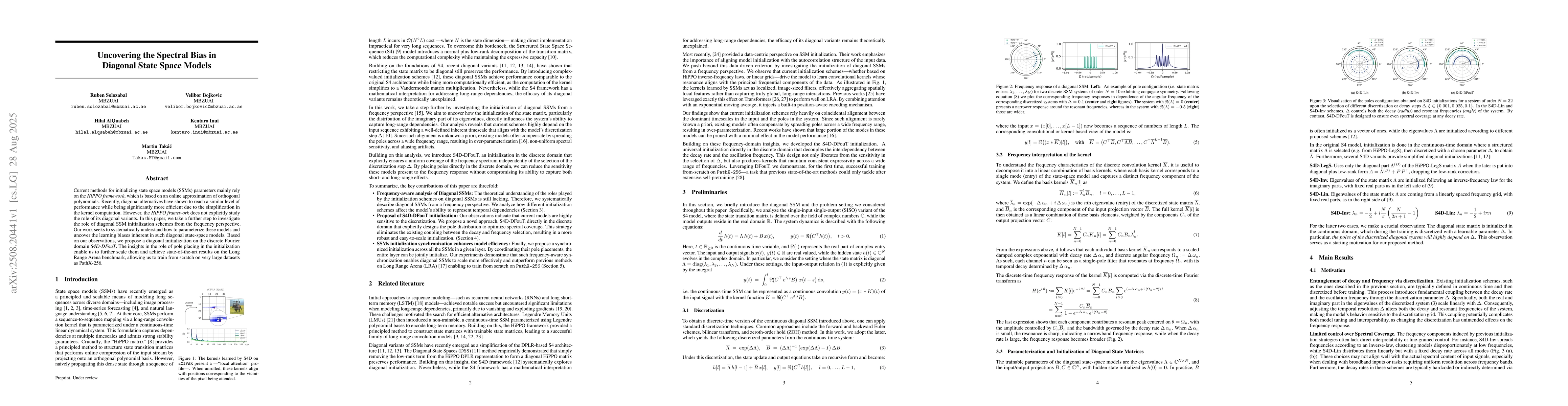 Current methods for initializing state space models (SSMs) parameters mainly rely on the \textit{HiPPO framework}, which is based on an online approximation of orthogonal polynomials. Recently, diagonal alternatives have shown to reach a similar level of performance while being significantly more efficient due to the simplification in the kernel computation. However, the \textit{HiPPO framework} does not explicitly study the role of its diagonal variants. In this paper, we take a further step to investigate the role of diagonal SSM initialization schemes from the frequency perspective. Our work seeks to systematically understand how to parameterize these models and uncover the learning biases inherent in such diagonal state-space models. Based on our observations, we propose a diagonal initialization on the discrete Fourier domain \textit{S4D-DFouT}. The insights in the role of pole placing in the initialization enable us to further scale them and achieve state-of-the-art results on the Long Range Arena benchmark, allowing us to train from scratch on very large datasets as PathX-256.