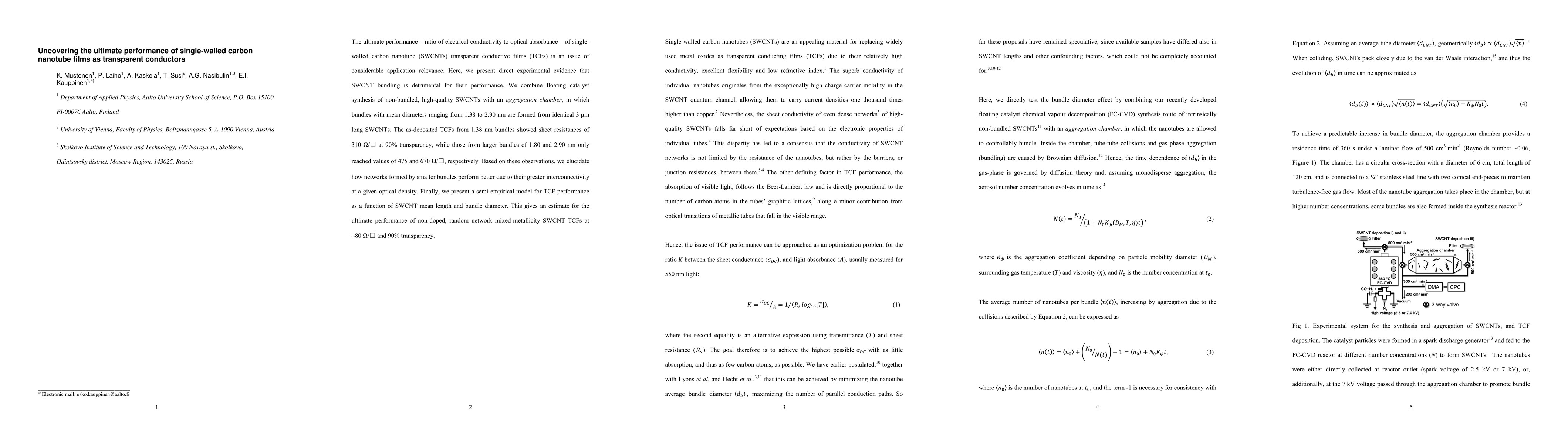 This paper investigates the performance of single-walled carbon nanotube (SWCNT) films as transparent conductors, revealing that smaller SWCNT bundles achieve better conductivity-transparency ratios due to enhanced interconnectivity. The study proposes a semi-empirical model predicting the ultimate performance of non-doped SWCNT films at ~80 Ohms/sq. and 90% transparency.