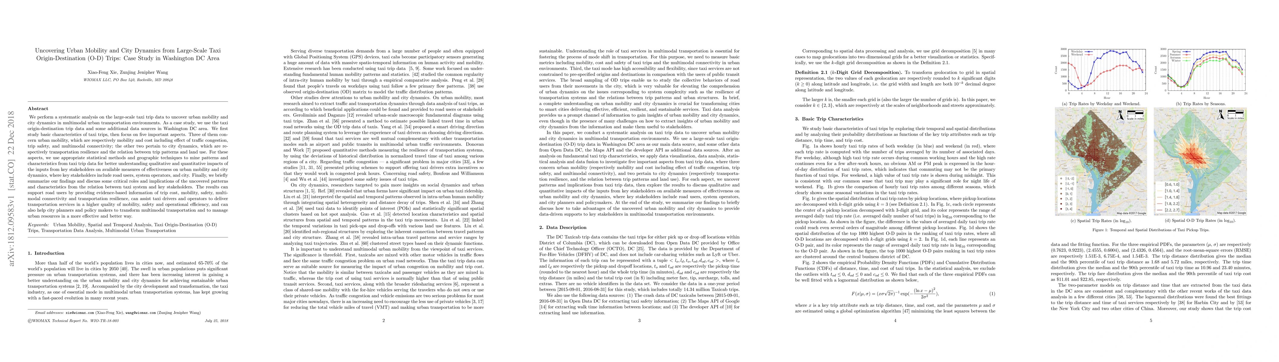 The research systematically analyzed large-scale taxi O-D trip data in the Washington DC area, focusing on urban mobility and city dynamics aspects such as mobility and cost, traffic congestion, trip safety, multimodal connectivity, transportation resilience, and the relation between trip patterns and land use.