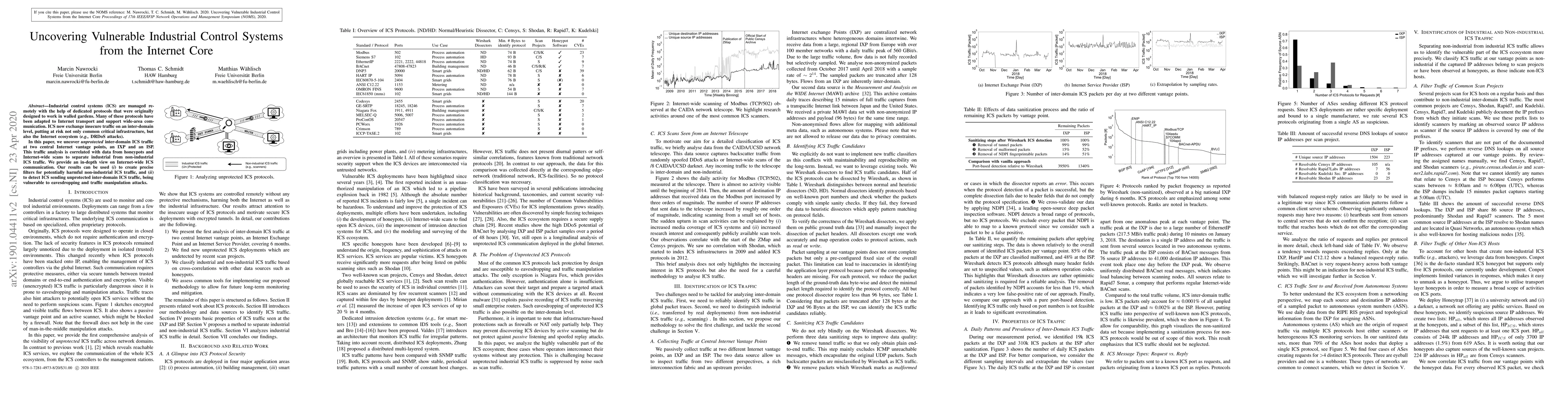 Industrial control systems (ICS) are managed remotely with the help of dedicated protocols that were originally designed to work in walled gardens. Many of these protocols have been adapted to Internet transport and support wide-area communication. ICS now exchange insecure traffic on an inter-domain level, putting at risk not only common critical infrastructure but also the Internet ecosystem (e.g., DRDoS~attacks). In this paper, we uncover unprotected inter-domain ICS traffic at two central Internet vantage points, an IXP and an ISP. This traffic analysis is correlated with data from honeypots and Internet-wide scans to separate industrial from non-industrial ICS traffic. We provide an in-depth view on Internet-wide ICS communication. Our results can be used i) to create precise filters for potentially harmful non-industrial ICS traffic, and ii) to detect ICS sending unprotected inter-domain ICS traffic, being vulnerable to eavesdropping and traffic manipulation attacks.