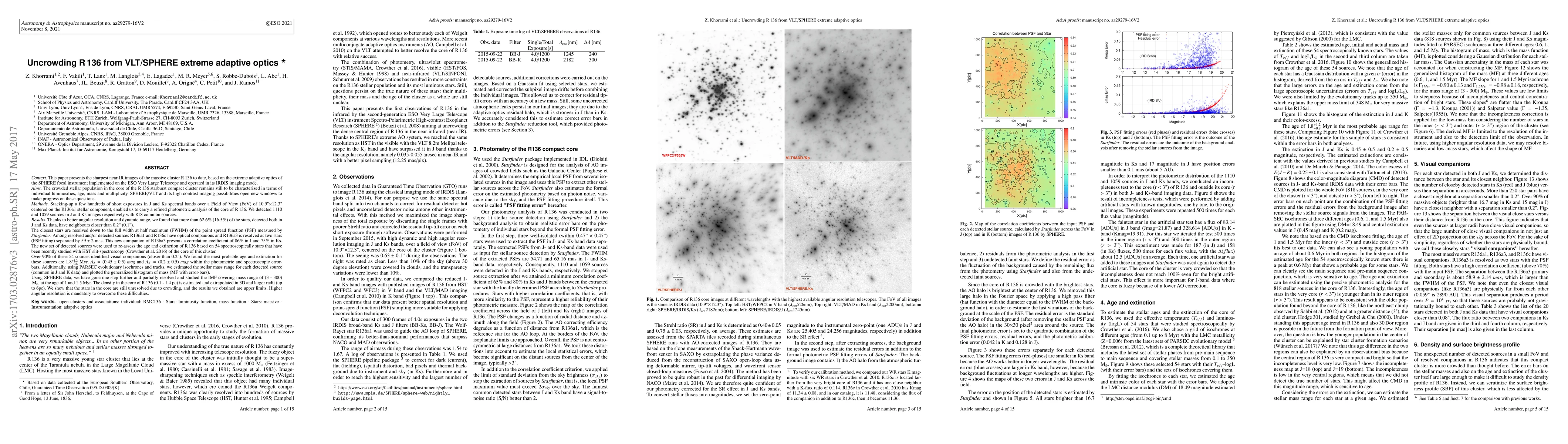 This research presents the clearest near-infrared images of the massive star cluster R136, utilizing SPHERE's extreme adaptive optics on the VLT. By stacking numerous short exposures, they detected 1110 and 1059 sources in J and Ks bands respectively. With enhanced resolution, they identified numerous close companions among the stars, resolving R136a1, R136c, and R136a3 into multiple stars. The study also refined the age and extinction estimates of R136 using spectroscopic data and PARSEC evolutionary models, partially resolving the Initial Mass Function (IMF) within a mass range of 3-300 solar masses. Despite these findings, the researchers stress that higher angular resolution is needed to overcome crowding issues and provide more accurate results.
