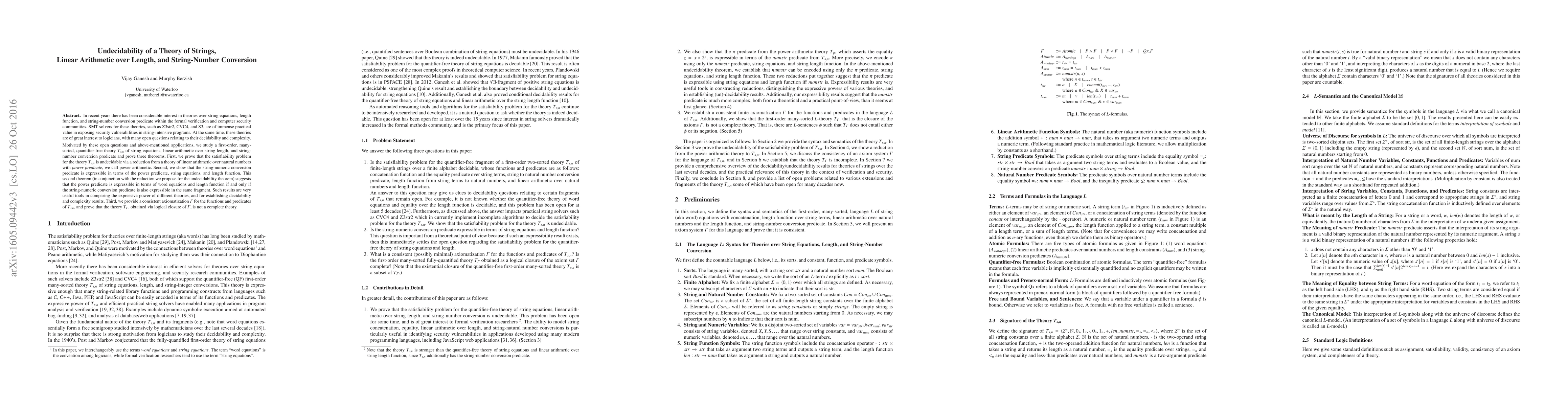 Researchers prove that a theory of strings and linear arithmetic is undecidable, showing its limitations in exposing security vulnerabilities, and establish key connections between string equations and other mathematical constructs.