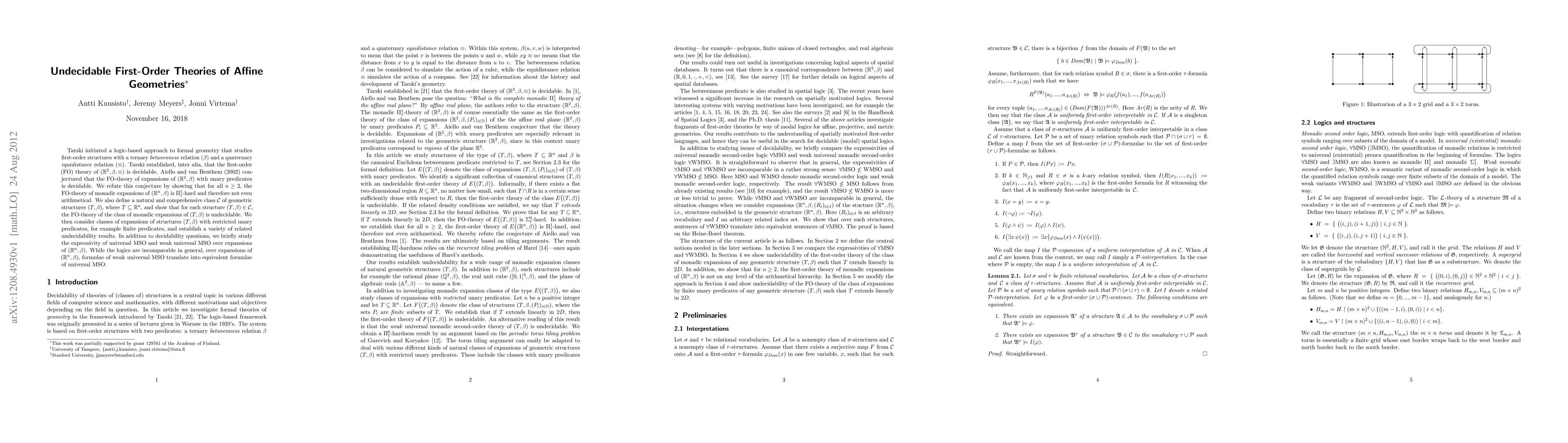 A study refutes a conjecture about the decidability of first-order theories of affine geometries, showing that certain expansions of these structures are undecidable, while others have limited expressivity.