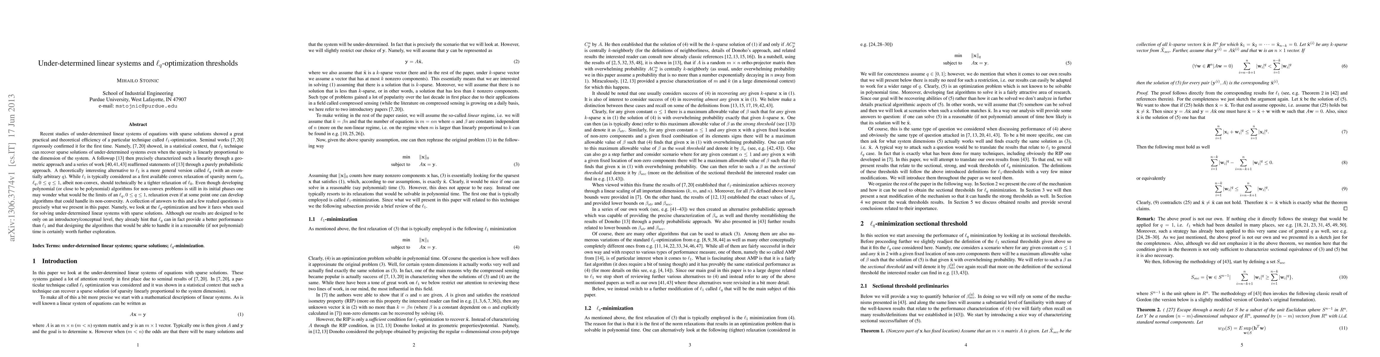 Recent studies of under-determined linear systems of equations with sparse solutions showed a great practical and theoretical efficiency of a particular technique called $\ell_1$-optimization. Seminal works \cite{CRT,DOnoho06CS} rigorously confirmed it for the first time. Namely, \cite{CRT,DOnoho06CS} showed, in a statistical context, that $\ell_1$ technique can recover sparse solutions of under-determined systems even when the sparsity is linearly proportional to the dimension of the system. A followup \cite{DonohoPol} then precisely characterized such a linearity through a geometric approach and a series of work\cite{StojnicCSetam09,StojnicUpper10,StojnicEquiv10} reaffirmed statements of \cite{DonohoPol} through a purely probabilistic approach. A theoretically interesting alternative to $\ell_1$ is a more general version called $\ell_q$ (with an essentially arbitrary $q$). While $\ell_1$ is typically considered as a first available convex relaxation of sparsity norm $\ell_0$, $\ell_q,0\leq q\leq 1$, albeit non-convex, should technically be a tighter relaxation of $\ell_0$. Even though developing polynomial (or close to be polynomial) algorithms for non-convex problems is still in its initial phases one may wonder what would be the limits of an $\ell_q,0\leq q\leq 1$, relaxation even if at some point one can develop algorithms that could handle its non-convexity. A collection of answers to this and a few realted questions is precisely what we present in this paper.