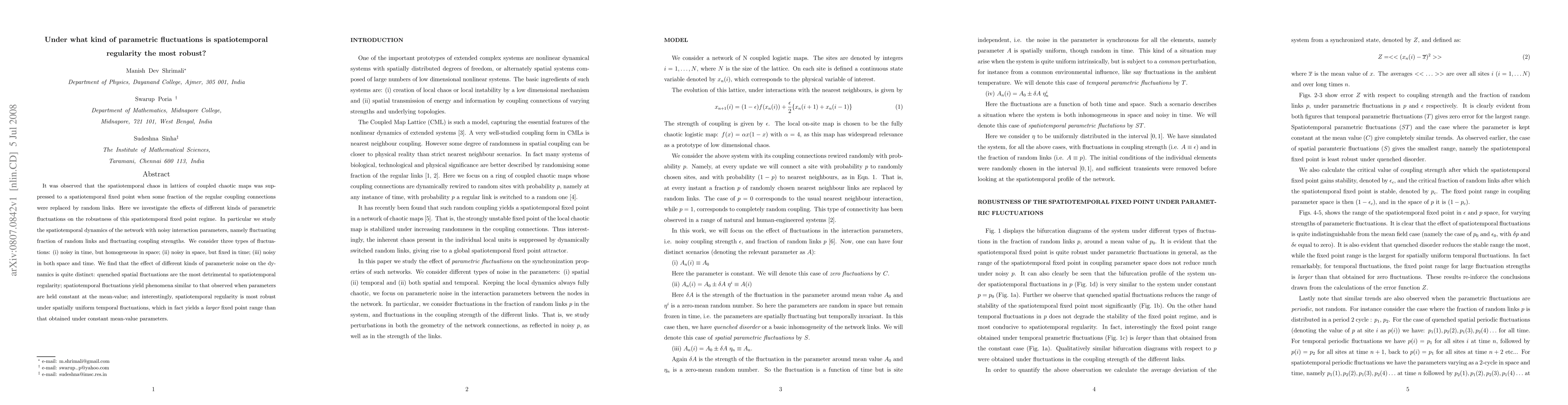 Researchers found that spatiotemporal regularity is most robust under spatially uniform temporal fluctuations, which outperforms constant mean-value parameters in maintaining a fixed point regime.