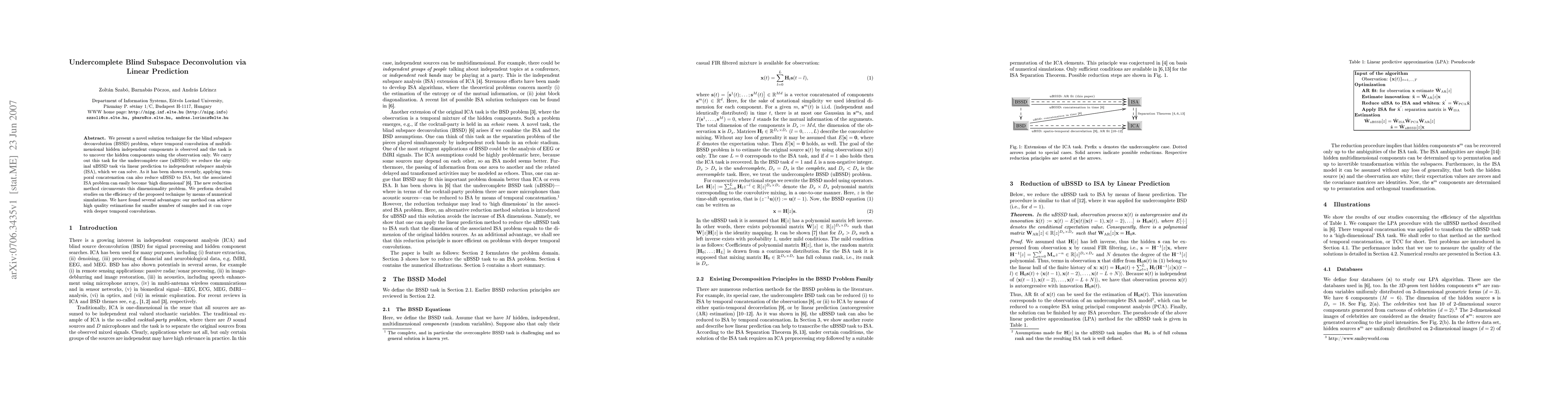 This paper introduces a novel method for undercomplete blind subspace deconvolution (uBSSD) by reducing the problem through linear prediction to independent subspace analysis (ISA), avoiding high-dimensionality issues. The proposed technique achieves high-quality estimations with fewer samples and handles deeper temporal convolutions effectively.