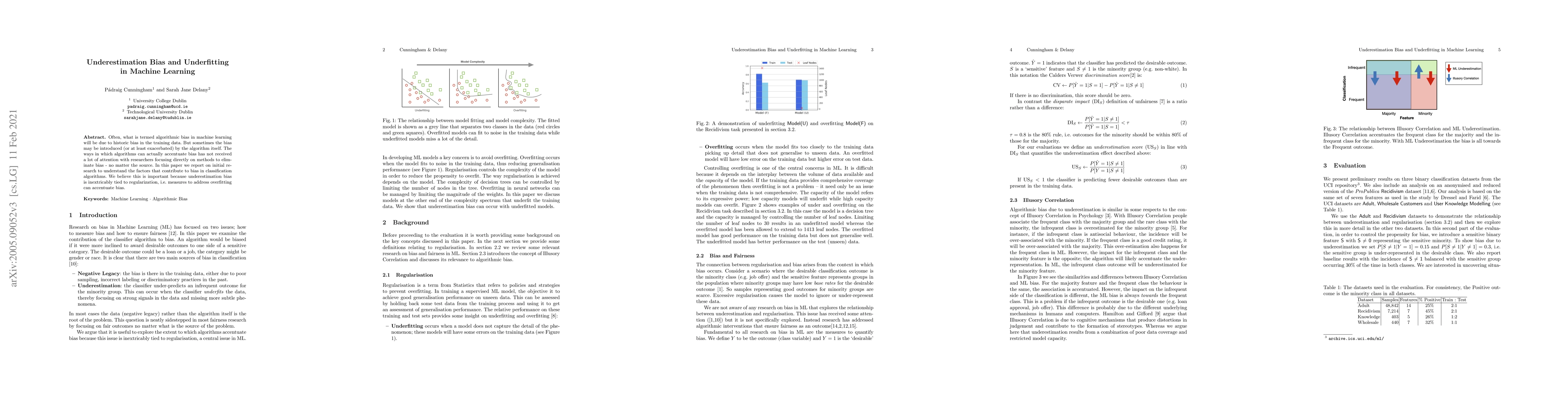 This paper investigates how machine learning algorithms can introduce bias in classification models, particularly when using regularization to prevent overfitting. It aims to shed light on the factors contributing to underestimation bias in machine learning.